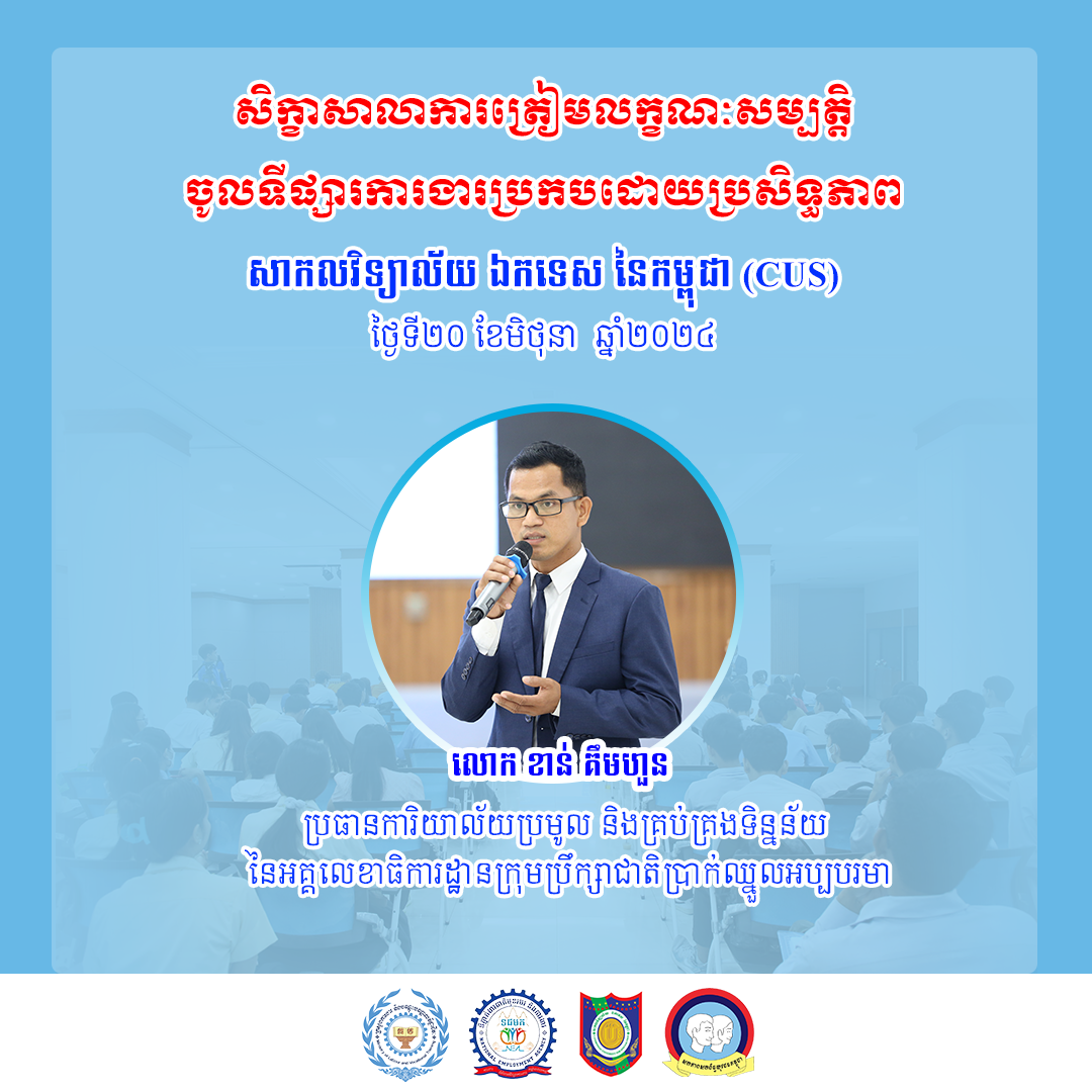 សិក្ខាសាលាការត្រៀមលក្ខណៈសម្បត្តិចូលទីផ្សារការងារប្រកបដោយប្រសិទ្ធភាព ទីតាំងសាកលវិទ្យាល័យ ឯកទេស នៃកម្ពុជា (CUS)