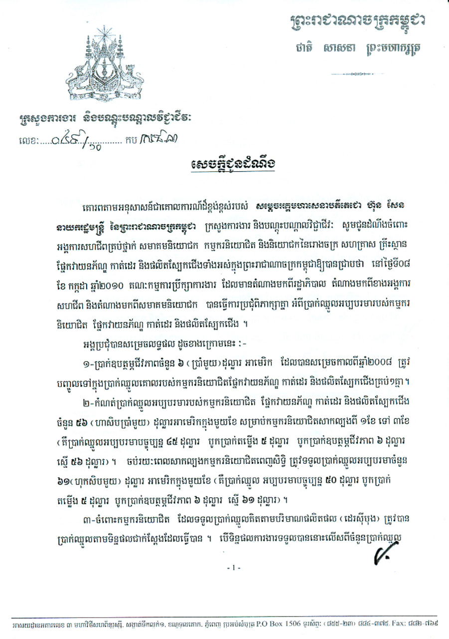 សេចក្ដីជូនដំណឹង ស្ដីពីលទ្ធផលនៃកិច្ចប្រជុំរបស់ក្រុមប្រឹក្សាជាតិប្រាក់ឈ្នួលអប្បបរមា អាណត្តិទី៤(២០២៥-២០២៦)