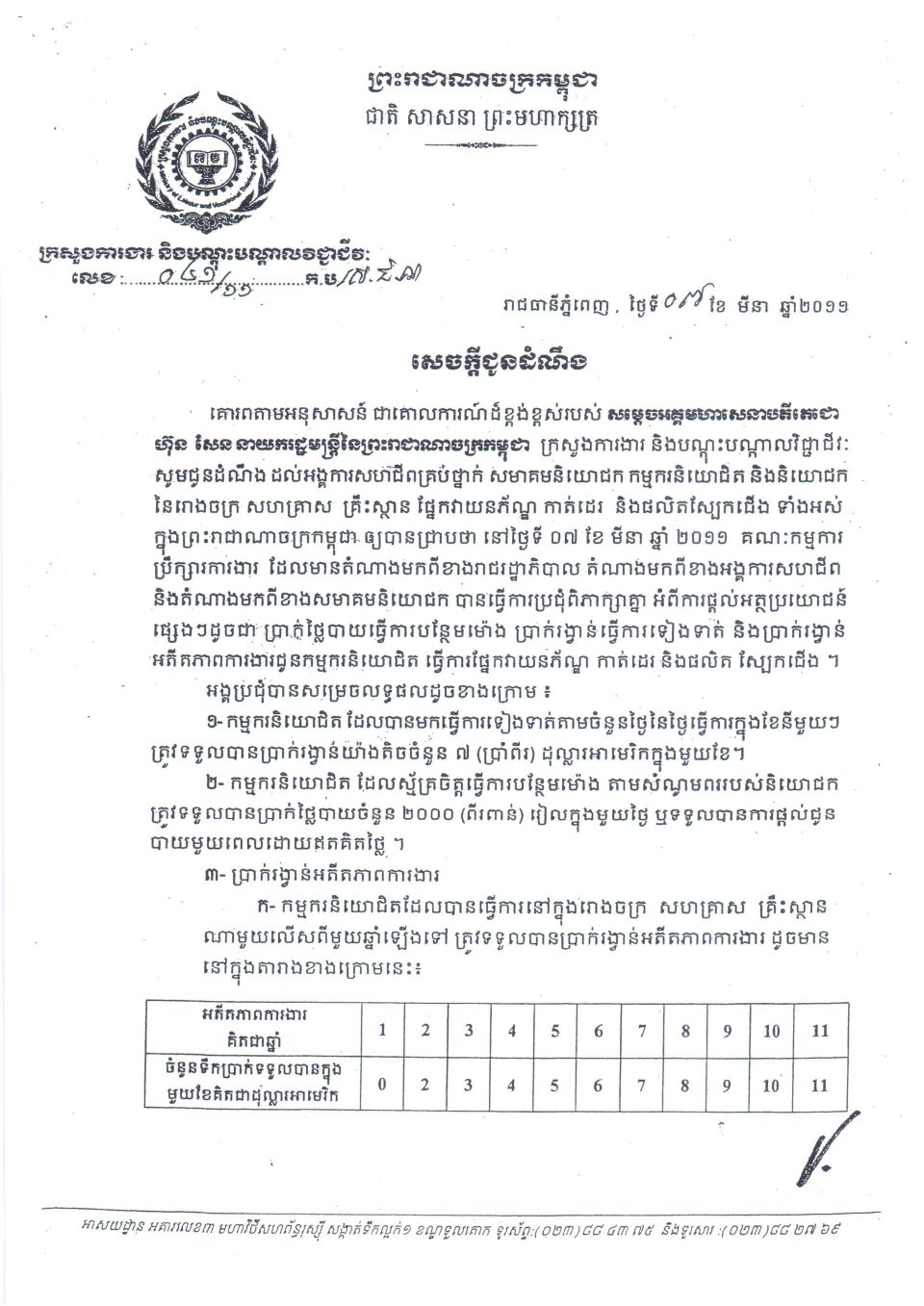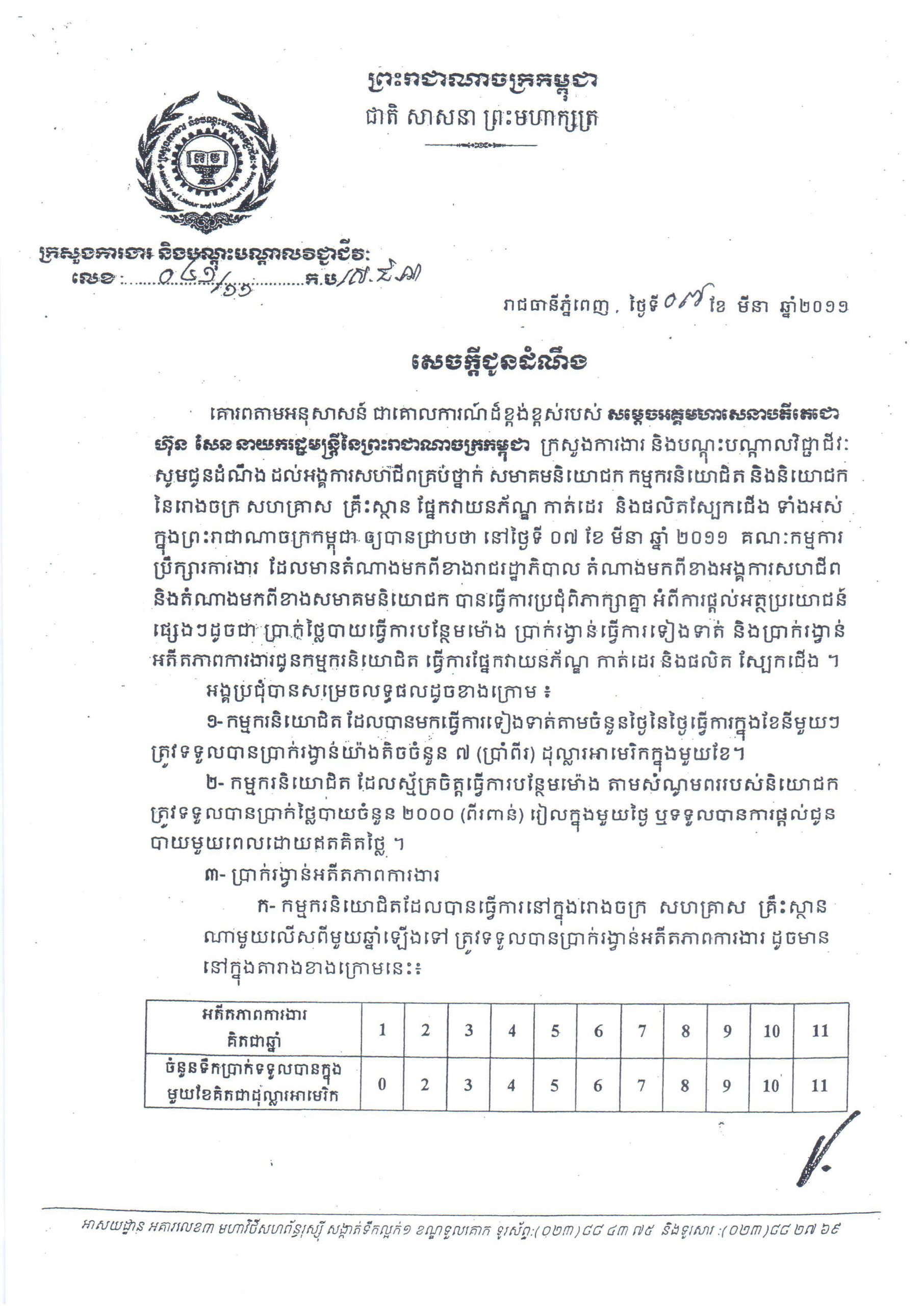 សេចក្តីជូនដំណឹងសេចក្តីជូនដំណឹងលេខ០៤១/១១ កប/ស.ជ.ណ ចុះថ្ងៃទី៧ ខែមីនា ឆ្នាំ២០១១ ថ្ងៃអាទិត្យ, 23 ខែមករា, 2011ថ្ងៃព្រហស្បតិ៍, 23 ខែមករា, 20250186 សេចក្តីជូនដំណឹងលេខ០៤១/១១ កប/ស.ជ.ណ ចុះថ្ងៃទី៧ ខែមីនា ឆ្នាំ២០១១