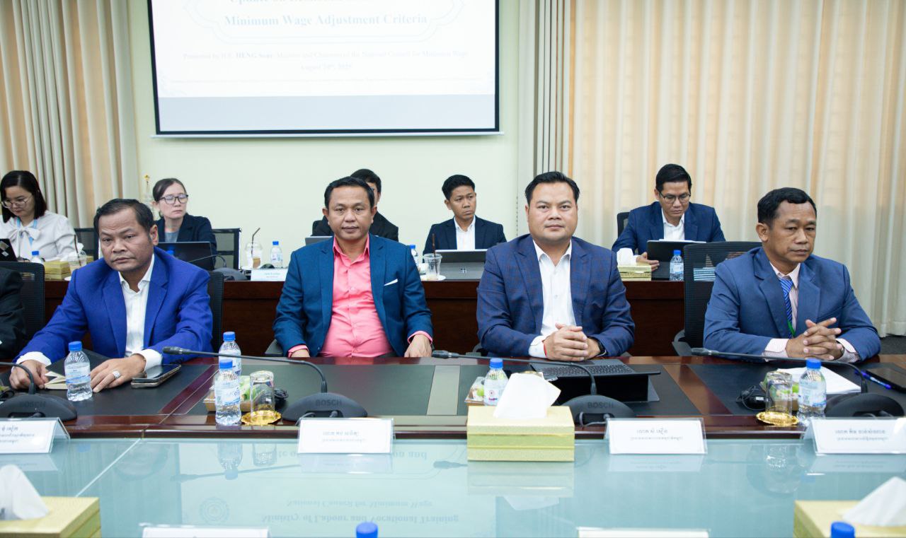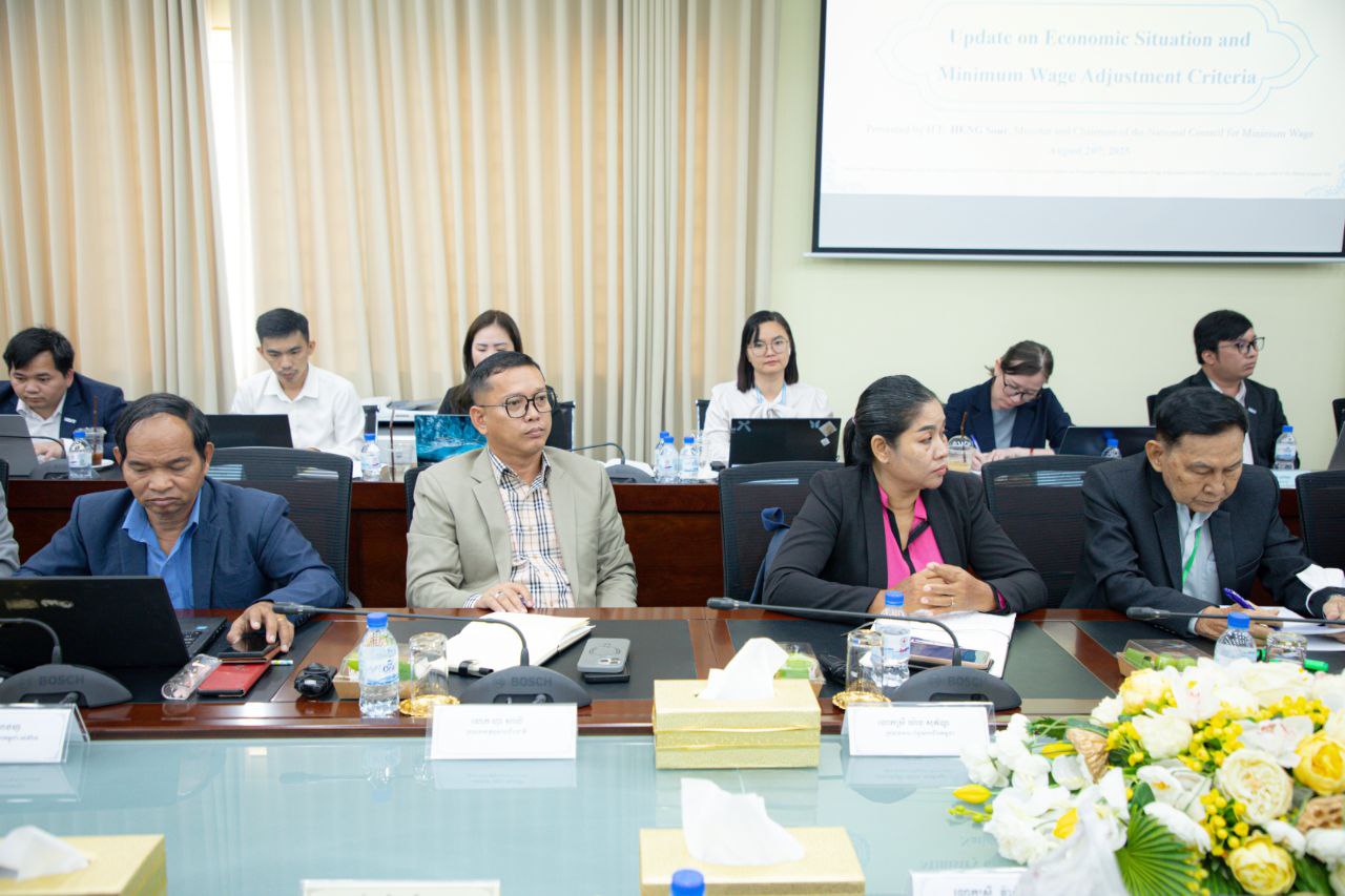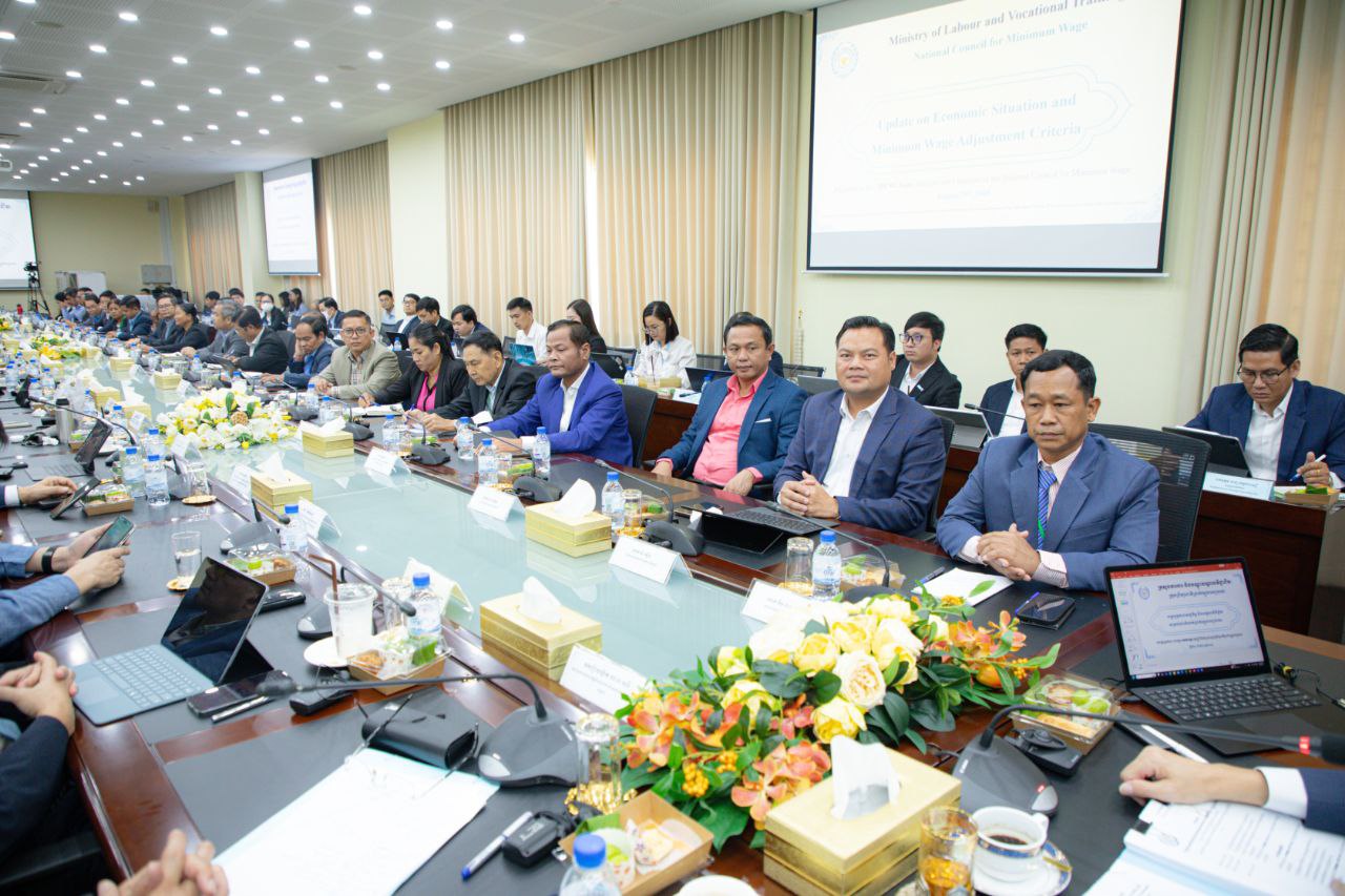 (ភ្នំពេញ)៖ ក្រុមប្រឹក្សាជាតិប្រាក់ឈ្នួលអប្បបរមា បានបន្តកិច្ចប្រជុំត្រីភាគីរបស់ខ្លួន ដើម្បីបន្តពិភាក្សាកំណត់ប្រាក់ឈ្នួលអប្បបរមាផ្នែកវាយនភណ្ឌ កាត់ដេរ ផលិតស្បែកជើង និងផលិតផលិតផលធ្វើដំណើរនិងកាបូប សម្រាប់ឆ្នាំ២០២៦ ក្រោមអធីបតីភាព ឯកឧត្តម ហេង សួរ រដ្ឋមន្ត្រីក្រសួងការងារ និងបណ្ដុះបណ្ដាលវិជ្ជាជីវៈ និងជាប្រធានក្រុមប្រឹក្សាជាតិប្រាក់ឈ្នួលអប្បបរមា នាព្រឹកថ្ងៃទី៣ ខែកញ្ញា ឆ្នាំ២០២៥ នៅទីស្តីការក្រសួងការងារ និងបណ្តុះបណ្តាលវិជ្ជាជីវៈ។