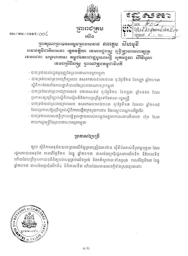 ច្បាប់ ស្ដីពី​​ការ​ធ្វើ​វិសោ​ធន​កម្ម​​មាត្រា​ ១៣៩ និង ១៤៤ នៃច្បាប់ស្តីពីការងារ