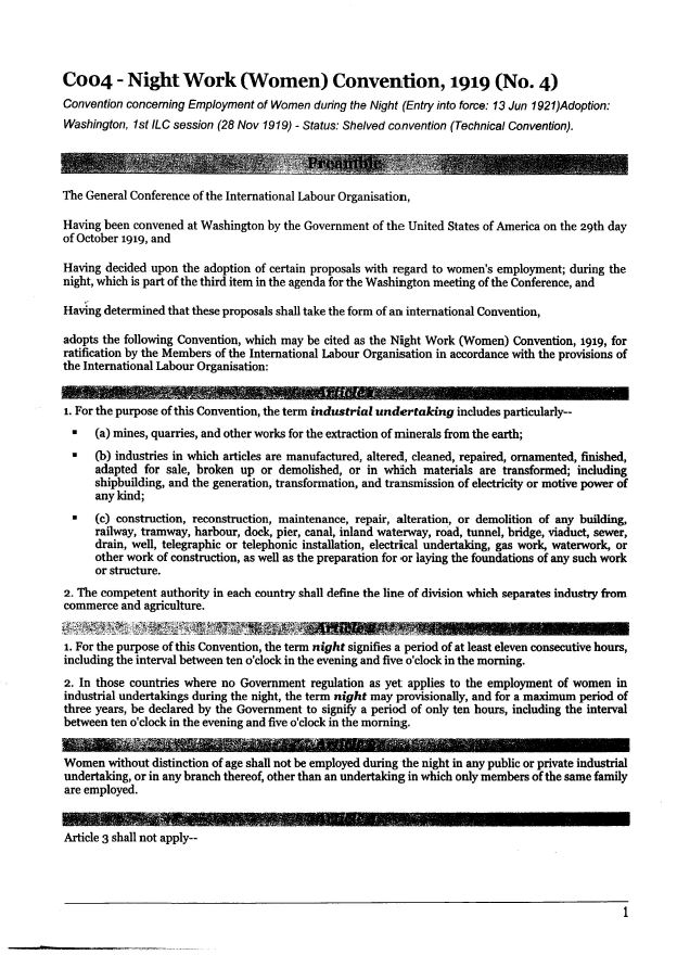 អនុសញ្ញាអន្តរជាតិអនុសញ្ញាលេខ៤ ស្ដីពីការងារពេលយប់របស់ស្ត្រី / Night Work Women Convention No.04 ថ្ងៃអាទិត្យ, 21 ខែមីនា, 202101539 អនុសញ្ញាលេខ៤ ស្ដីពីការងារពេលយប់របស់ស្ត្រី / Night Work Women Convention No.04