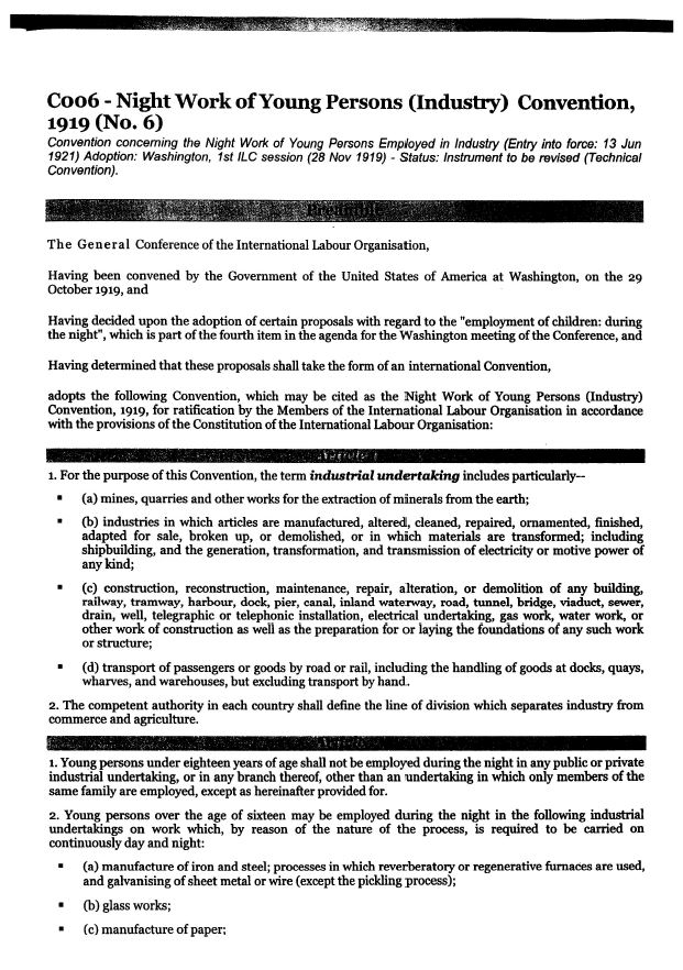 អនុសញ្ញា​លេខ៦ ស្ដីពី​ការ​ងារ​ពេល​យប់​របស់​មនុស្សពេញវ័យ / Night Work for young person (Industry) No.06