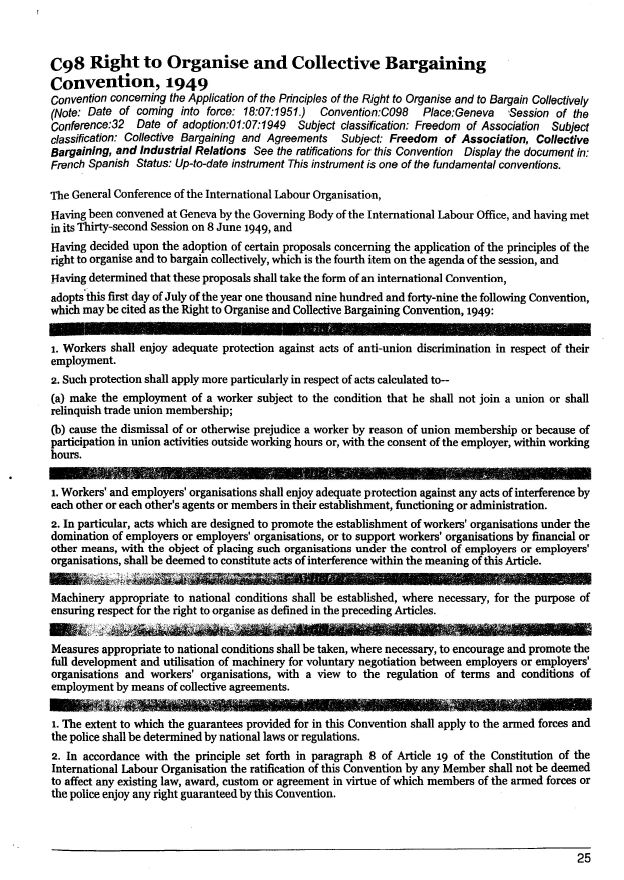 អនុសញ្ញាអន្តរជាតិអនុសញ្ញាលេខ៩៨ ការអនុវត្តន៍គោលការណ៍ ស្ដីពីសិទ្ធិនៃការបង្កើតសហគមន៍ / Right to Organise and collective Barganinig Convention No.98 ថ្ងៃអាទិត្យ, 21 ខែមីនា, 202102238 អនុសញ្ញាលេខ៩៨ ការអនុវត្តន៍គោលការណ៍ ស្ដីពីសិទ្ធិនៃការបង្កើតសហគមន៍ / Right to Organise and collective Barganinig Convention No.98