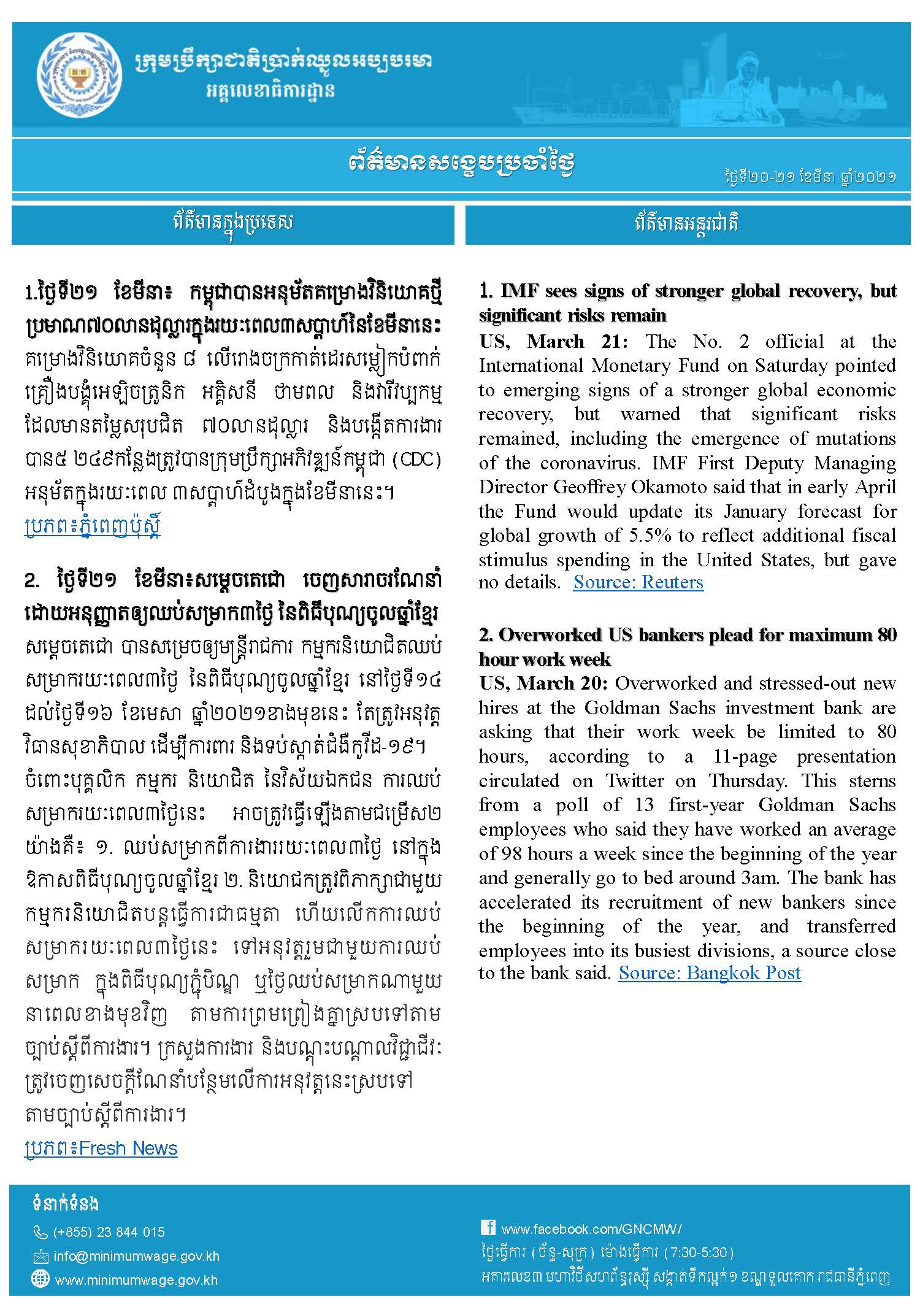 ព័ត៌មានសង្ខេបប្រចាំថ្ងៃទី២០-២១ ខែមីនា ឆ្នំា២០២១