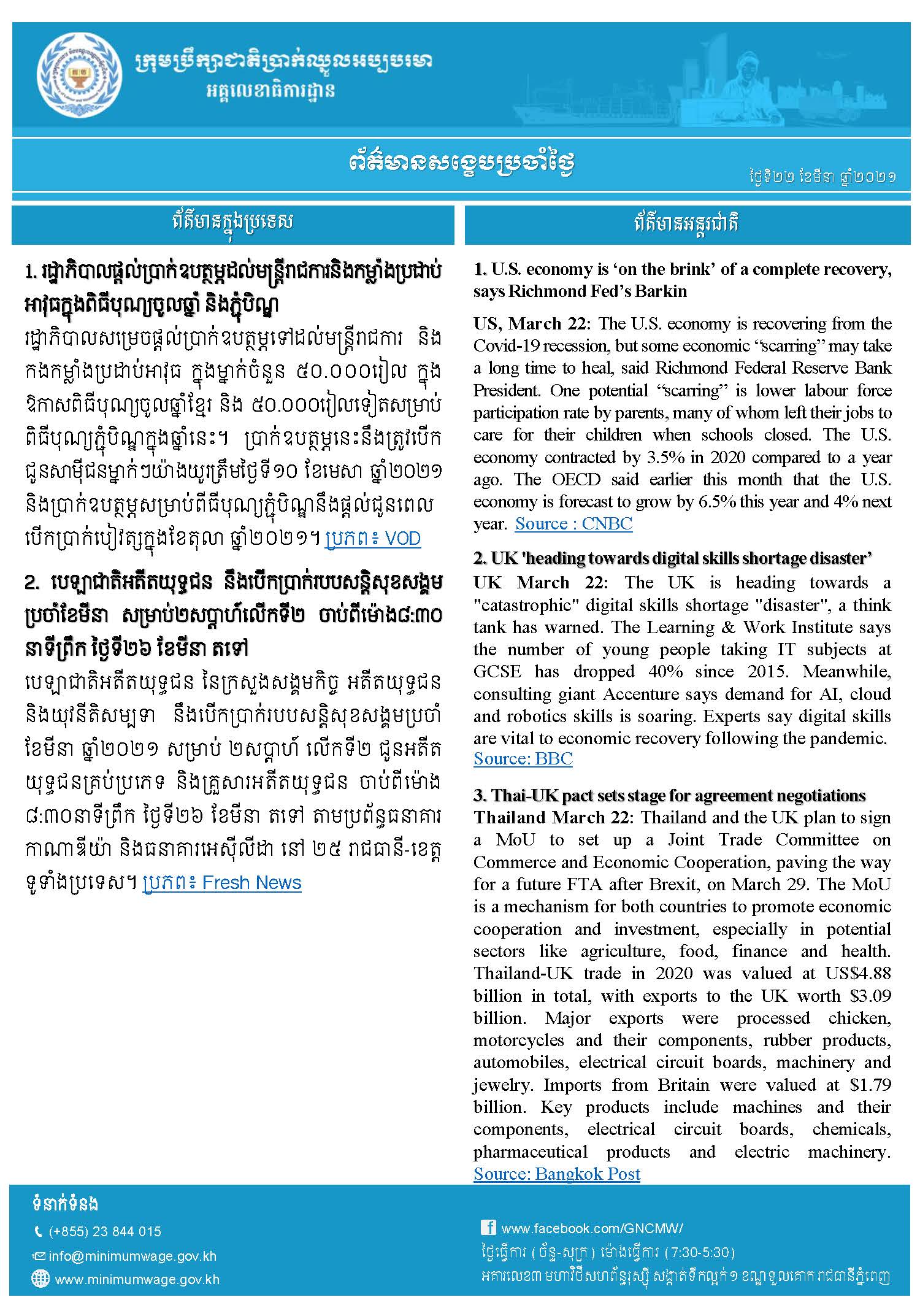 ព័ត៌មានសង្ខេបជាតិ និងអន្តរជាតិប្រចាំថ្ងៃទី២៧ ខែមេសា ឆ្នាំ២០២២ ពី អគ្គលេខាធិការដ្ឋានក្រុមប្រឹក្សាជាតិប្រាក់ឈ្នួលអប្បបរមា