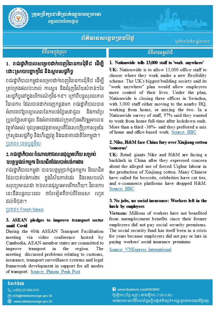 ព័ត៌មានសង្ខេបប្រចាំថ្ងៃទី២៤ ខែមីនា ឆ្នំា២០២១