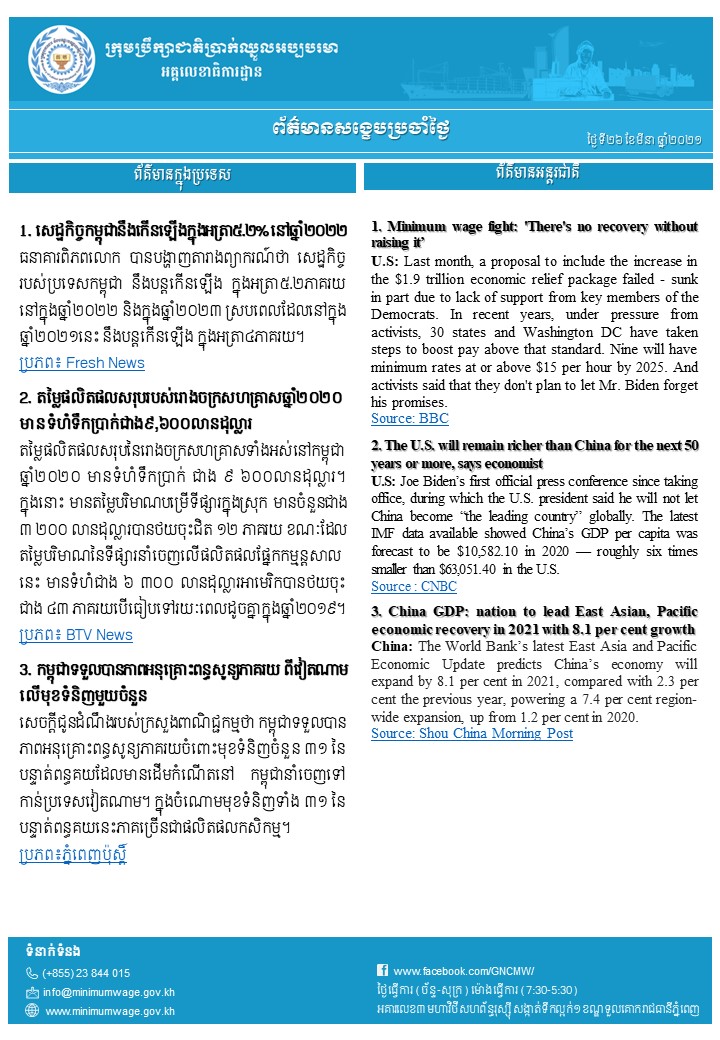 ព័ត៌មានសង្ខេបជាតិ និងអន្តរជាតិប្រចាំថ្ងៃទី២៨ ខែមេសា ឆ្នាំ២០២២ ពី អគ្គលេខាធិការដ្ឋានក្រុមប្រឹក្សាជាតិប្រាក់ឈ្នួលអប្បបរមា