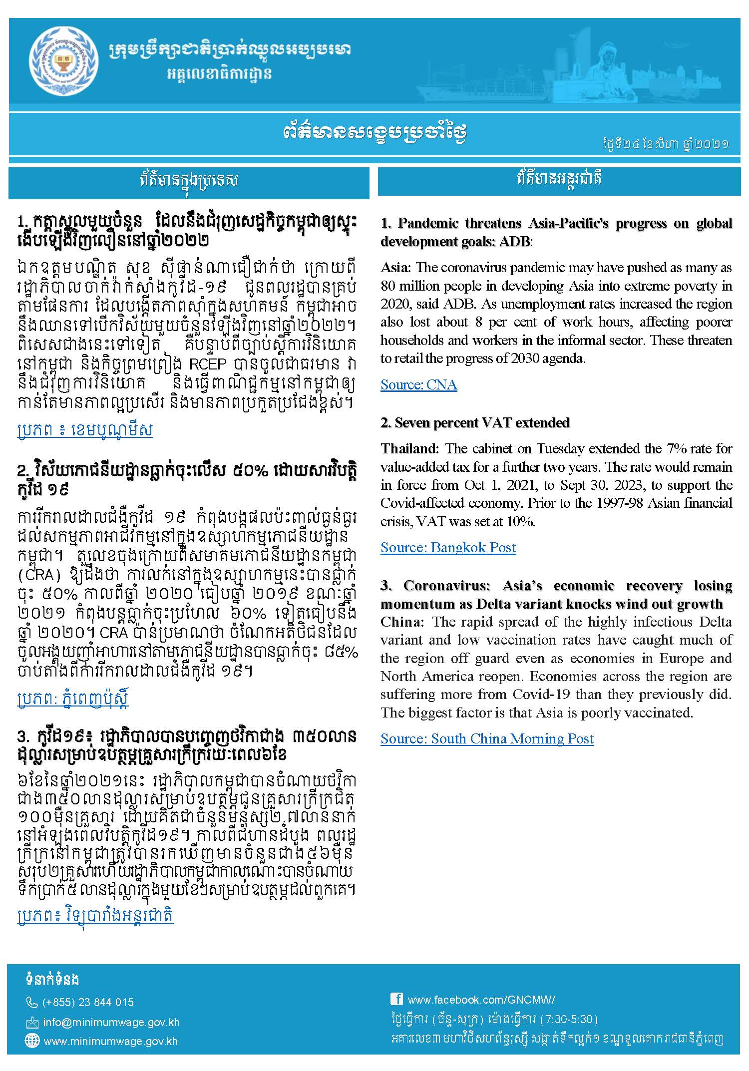 ព័ត៌មានសង្ខេបជាតិ និងអន្តរជាតិប្រចាំថ្ងៃទី២៤ ខែសីហា ឆ្នាំ២០២១
