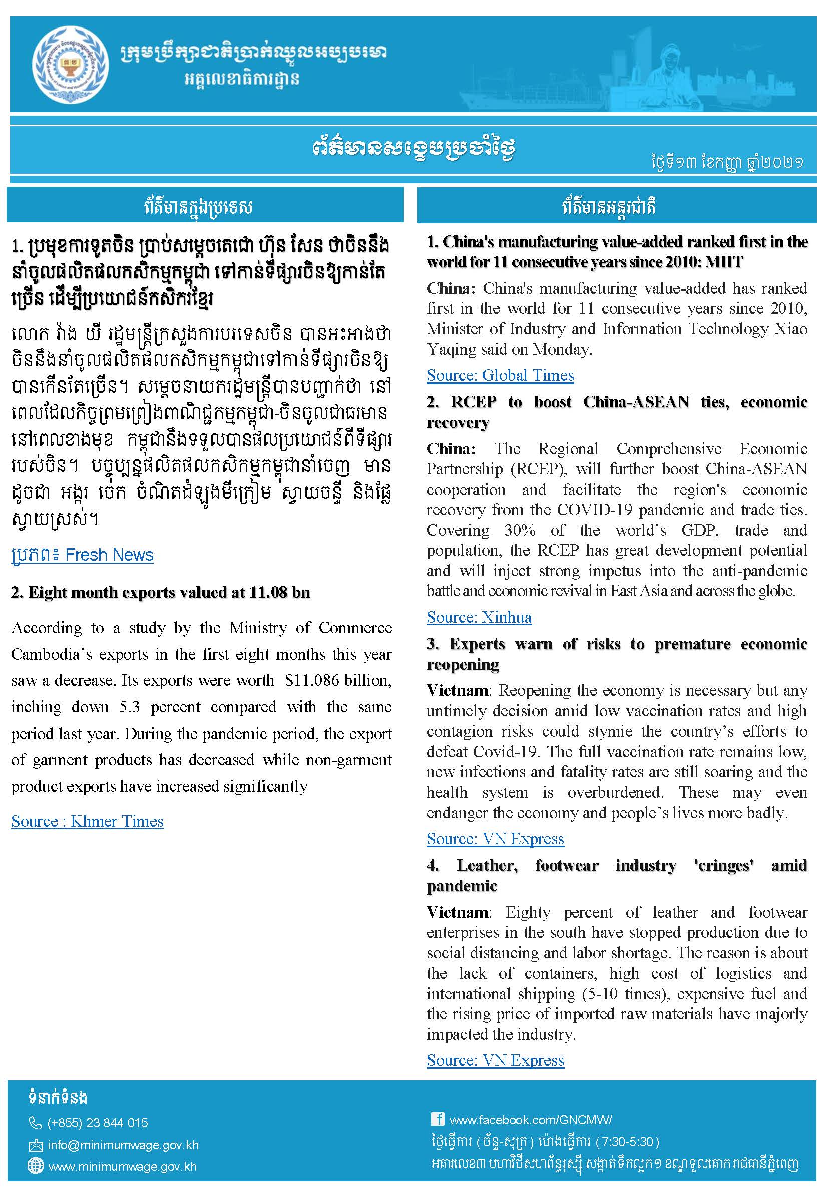 ព័ត៌មានសង្ខេបជាតិ និងអន្តរជាតិប្រចាំថ្ងៃទី១៣ ខែកញ្ញា ឆ្នាំ២០២១