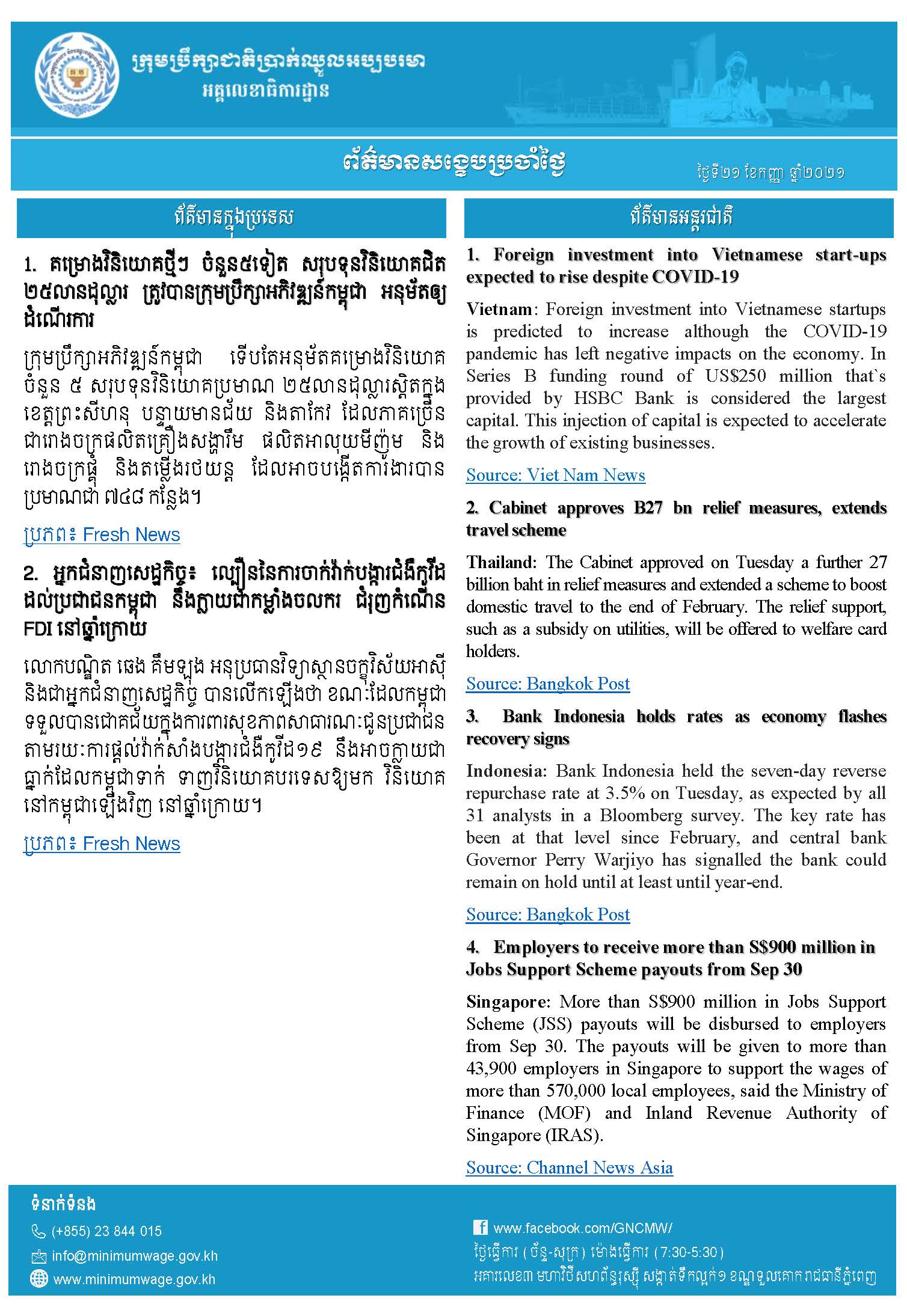 ព័ត៌មានសង្ខេបជាតិ និងអន្តរជាតិប្រចាំថ្ងៃទី២១ ខែកញ្ញា ឆ្នាំ២០២១