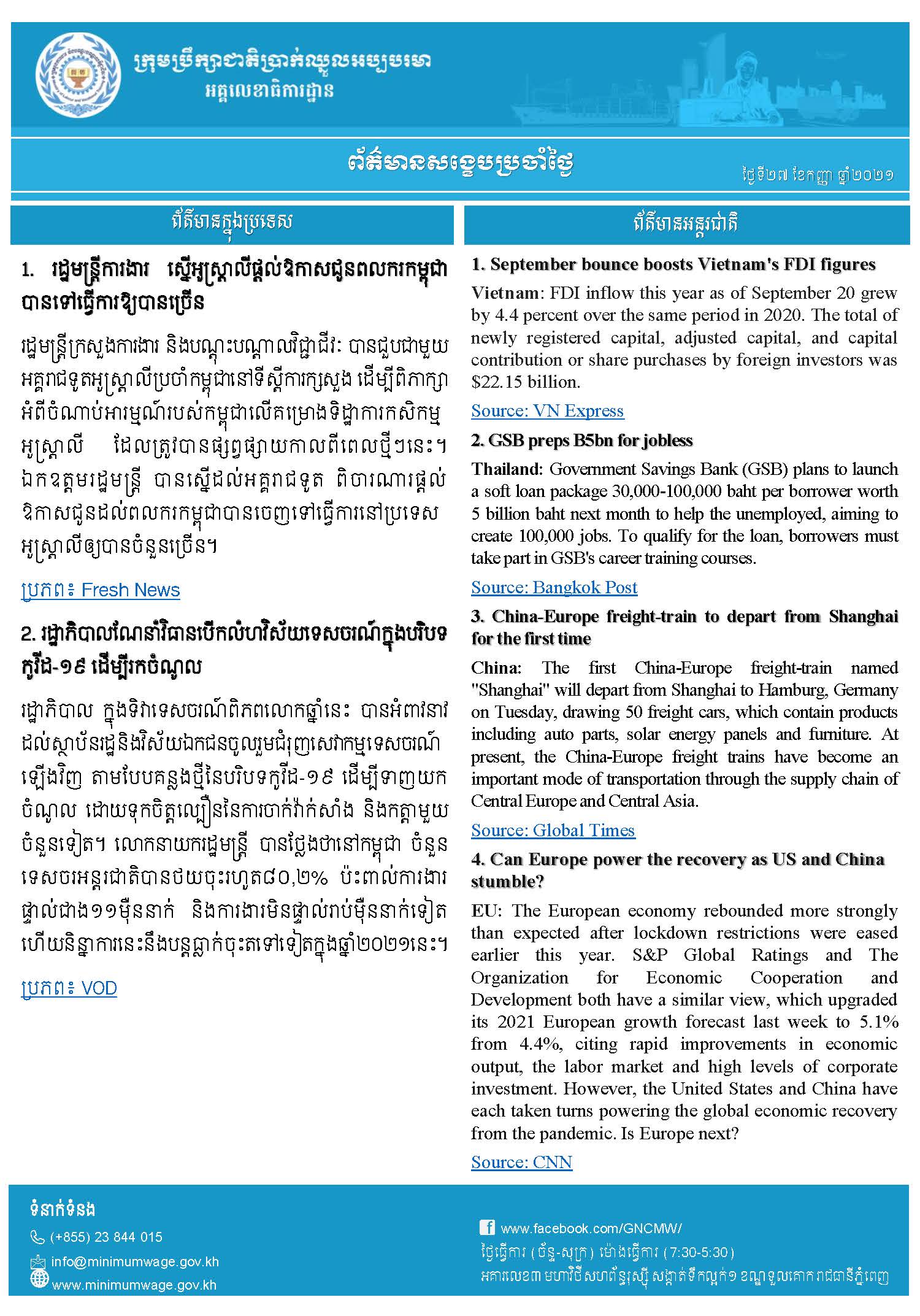 ព័ត៌មានសង្ខេបជាតិ និងអន្តរជាតិប្រចាំថ្ងៃទី១៧ ខែមិថុនា ឆ្នាំ២០២២ ពី អគ្គលេខាធិការដ្ឋានក្រុមប្រឹក្សាជាតិប្រាក់ឈ្នួលអប្បបរមា