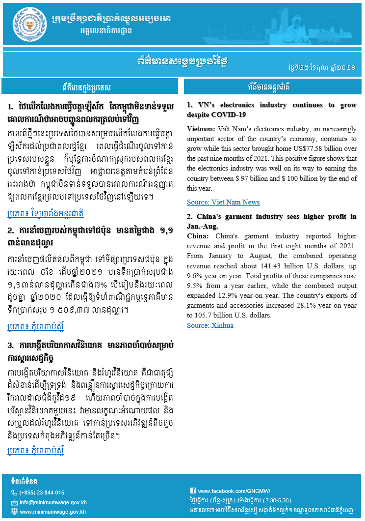 ព័ត៌មានសង្ខេបជាតិ និងអន្តរជាតិប្រចាំថ្ងៃទី២៥ ខែតុលា ឆ្នាំ២០២១