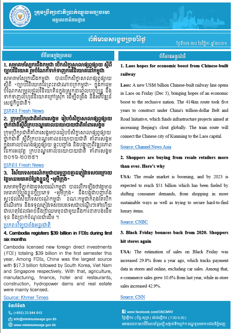 ១. សមាគមស្បែកជើងកម្ពុជា បើកសិក្ខាសាលាផ្សព្វផ្សាយ ស្តីពីច្បាប់វិនិយោគ រួមចំណែកទាក់ទាញការវិនិយោគនៅកម្ពុជា