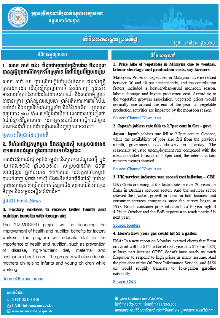 ៣. Factory workers to receive better health and nutrition benefits with foreign aid