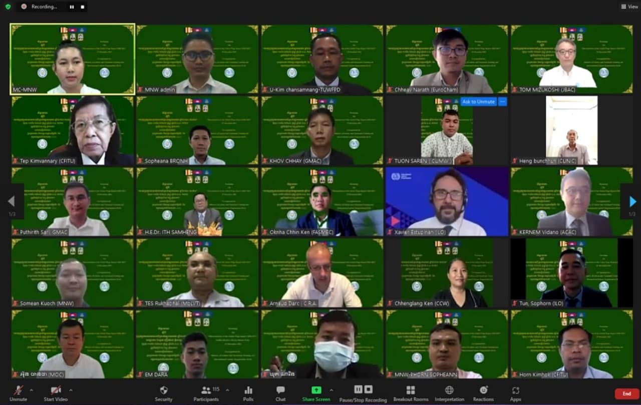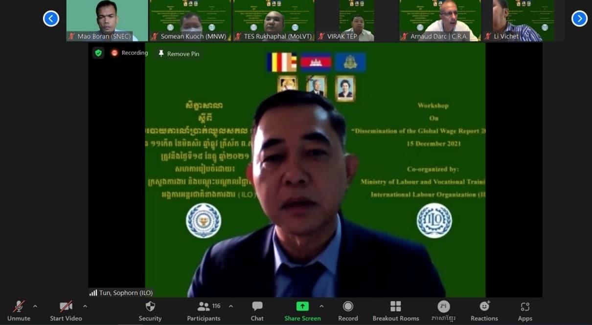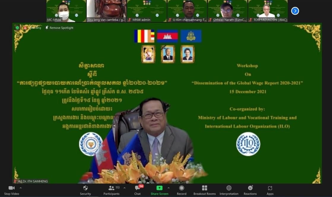រដ្ឋមន្រ្តីក្រសួងការងារ និងបណ្តុះបណ្តាលវិជ្ជាជីវៈ អញ្ជើញជាអធិបតីក្នុងពិធីបើក “សិក្ខាសាលាផ្សព្វផ្សាយ របាយការណ៍ប្រាក់ឈ្នួលសកល ឆ្នាំ២០២០-២០២១” របស់អង្គការអន្តរជាតិខាងការងារ ILO តាមប្រព័ន្ធអនឡាញ