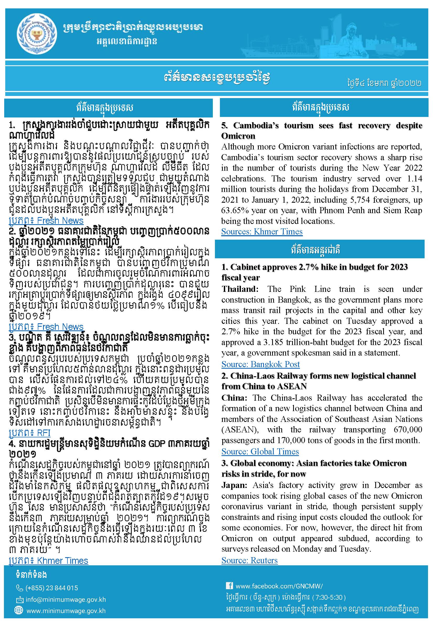 ព័ត៌មានសង្ខេបជាតិ និងអន្តរជាតិប្រចាំថ្ងៃទី៨ ខែកុម្ភៈ ឆ្នាំ២០២៣ ពី អគ្គលេខាធិការដ្ឋានក្រុមប្រឹក្សាជាតិប្រាក់ឈ្នួលអប្បបរមា