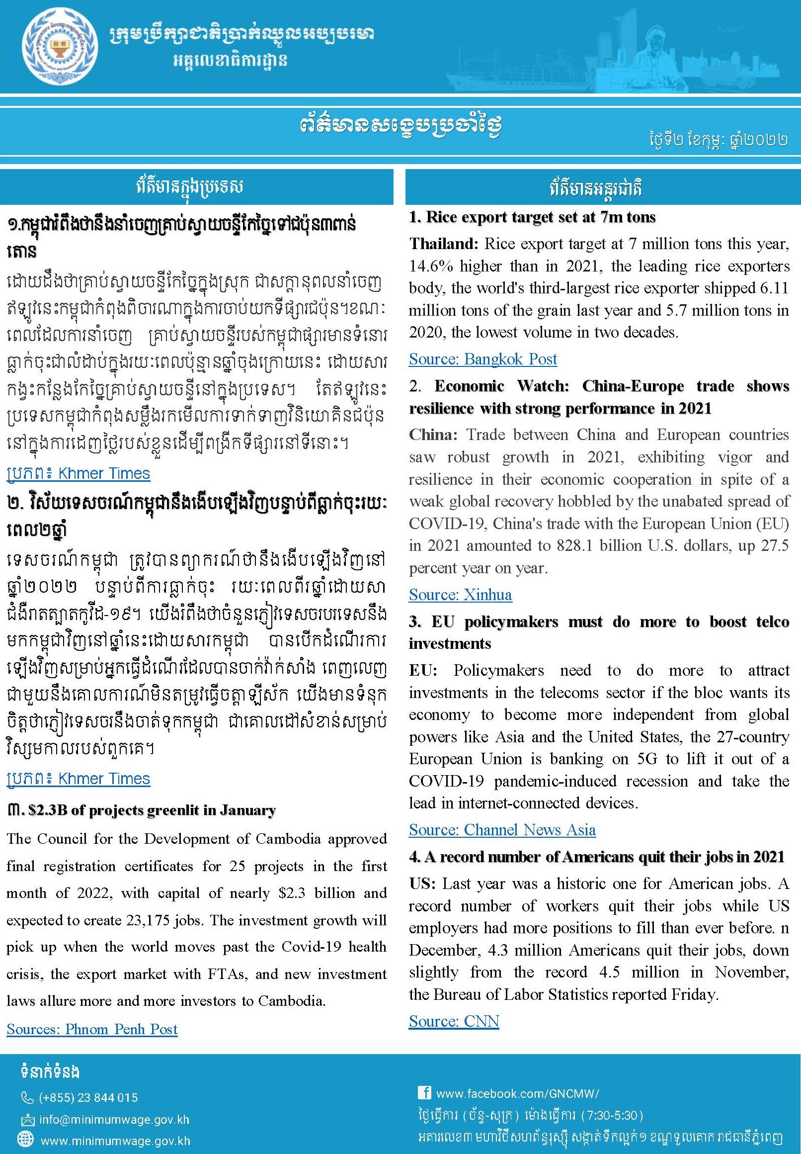 ១.កម្ពុជារំពឹងថានឹងនាំចេញគ្រាប់ស្វាយចន្ទីកែច្នៃទៅជប៉ុន៣ពាន់តោន