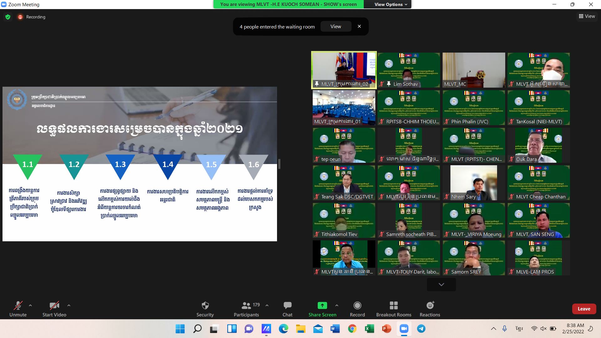(ភ្នំពេញ)៖ ឯកឧត្តម គួច សុមាន អគ្គលេខាធិការ នៃអគ្គលេខាធិការដ្ឋានក្រុមប្រឹក្សាជាតិប្រាក់ឈ្នួលអប្បបរមា នាព្រឹកថ្ងៃព្រហស្បតិ៍ ទី២៥ ខែកុម្ភៈឆ្នាំ២០២២នេះ បានធ្វើបទអន្តរាគមន៍ក្នុងសន្និបាតបូកសរុបលទ្ធផលការងារឆ្នាំ២០២១ នៃការអនុវត្តផែនការយុទ្ធសាស្រ្តអភិវឌ្ឍន៍វិស័យការងារ និងបណ្តុះបណ្តាលវិជ្ជាជីវៈ ឆ្នាំ២០១៩-២០២៣ និងលើកទិសដៅការងារឆ្នាំ២០២២។