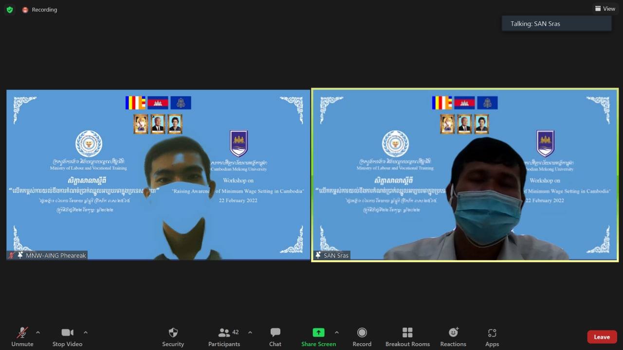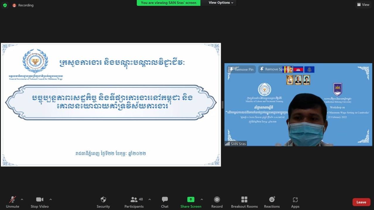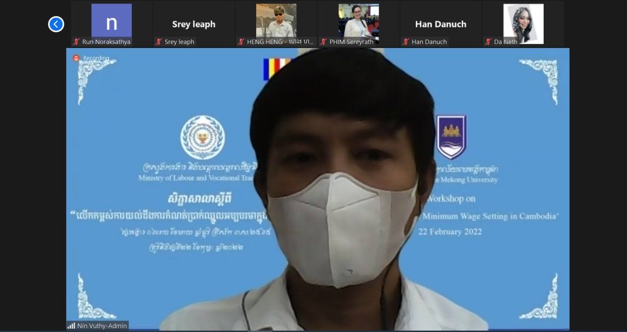 រាជធានីភ្នំពេញ៖ នាព្រឹកថ្ងៃទី២២ ខែកុម្ភៈ ឆ្នាំ២០២២ អគ្គលេខាធិការដ្ឋានក្រុមប្រឹក្សាជាតិប្រាក់ឈ្នួលអប្បបរមា បានសហការជាមួយ សាកលវិទ្យាល័យមេគង្គកម្ពុជា Cambodian Mekong University រៀបចំសិក្ខាសាលាស្តីពី «លើកកម្ពស់ការយល់ដឹងការកំណត់ប្រាក់ឈ្នួលអប្បបរមាក្នុងប្រទេសកម្ពុជា» ក្នុងគោលបំណង លើកកម្ពស់ការយល់ដឹងរបស់និស្សិតបន្ថែមអំពី ស្ថានភាពសេដ្ឋកិច្ច និងទីផ្សារការងារកម្ពុជា ដែលនឹងត្រូវបានបង្ហាញដោយប្រើប្រាស់ទិន្នន័យចុងក្រោយ និងឆ្លុះបញ្ចាំងពីទ្រឹស្តីសេដ្ឋកិច្ចដែលបានសិក្សាកន្លងមក ក៏ដូចជាការអនុវត្តជាក់ស្តែង ក្នុងការកំណត់ប្រាក់ឈ្នួលអប្បបរមា តាមយន្តការត្រីភាគី បើទោះបីស្ថិតក្នុងបរិការណ៍នៃវិបត្តិជំងឺកូវីដ-១៩ក៏ដោយ កម្ពុជាជាប្រទេសតែមួយគត់ដែលមានកំណើនប្រាក់ឈ្នួលអប្បបរមា ២ឆ្នាំជាប់គ្នា ខណៈដែលប្រទេសជិតខាង និងប្រទេសជាគូរប្រកួតប្រជែងកម្ពុជាបានផ្អាកការដំឡើងប្រាក់ឈ្នួលអប្បបរមា។ ហើយសិក្ខាសាលានេះគឺជាសង្ខីភាពមួយបញ្ជាក់ពីការចូលរួមជាមួយវិស័យអប់រំ នឹងជាឱកាសថ្មីមួយសម្រាប់និសិ្សត ក្នុងការបង្កើនការយល់ដឹងបន្ថែមអំពីប្រាក់ឈ្នួល ប្រាក់ឈ្នួលអប្បបរមា និងយន្តការនៃការកំណត់ប្រាក់ឈ្នួលអប្បបរមា ឱ្យកាន់តែទូលំទូលាយ។