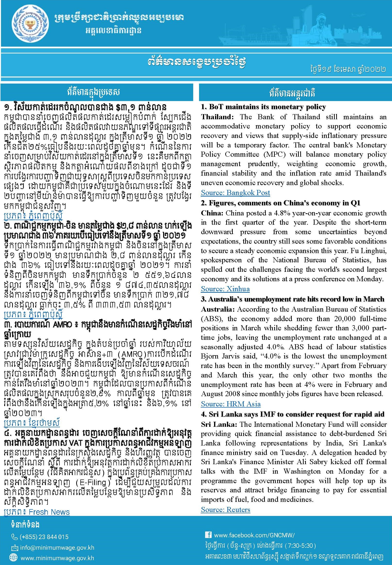 ៣. របាយការណ៍ AMRO ៖ កម្ពុជានឹងមានកំណើនសេដ្ឋកិច្ចរឹងមាំនៅឆ្នាំក្រោយ