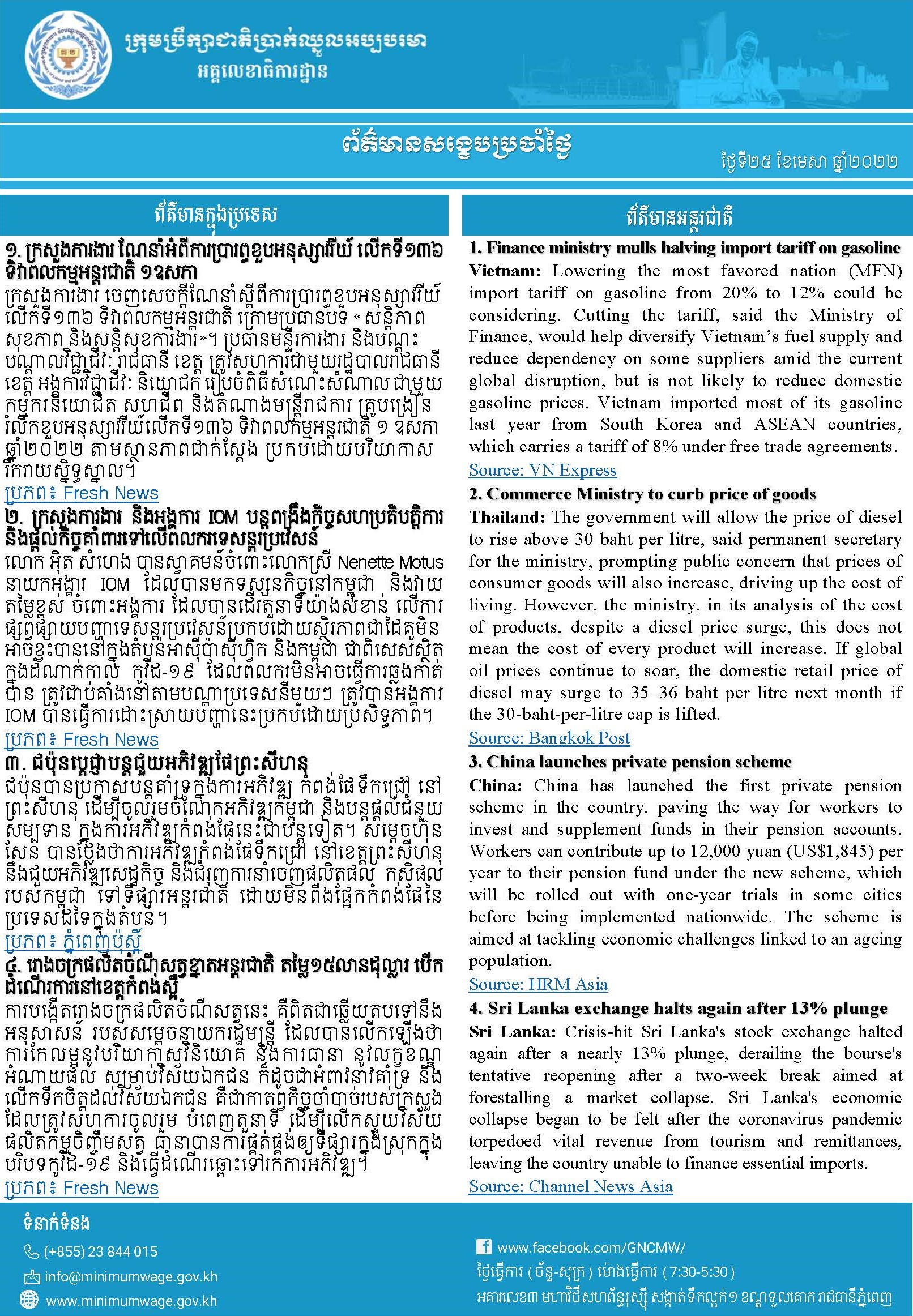 ១. ក្រសួងការងារ ណែនាំអំពីការប្រារព្ធខួបអនុស្សាវរីយ៍ លើកទី១៣៦ ទិវាពលកម្មអន្តរជាតិ ១ឧសភា