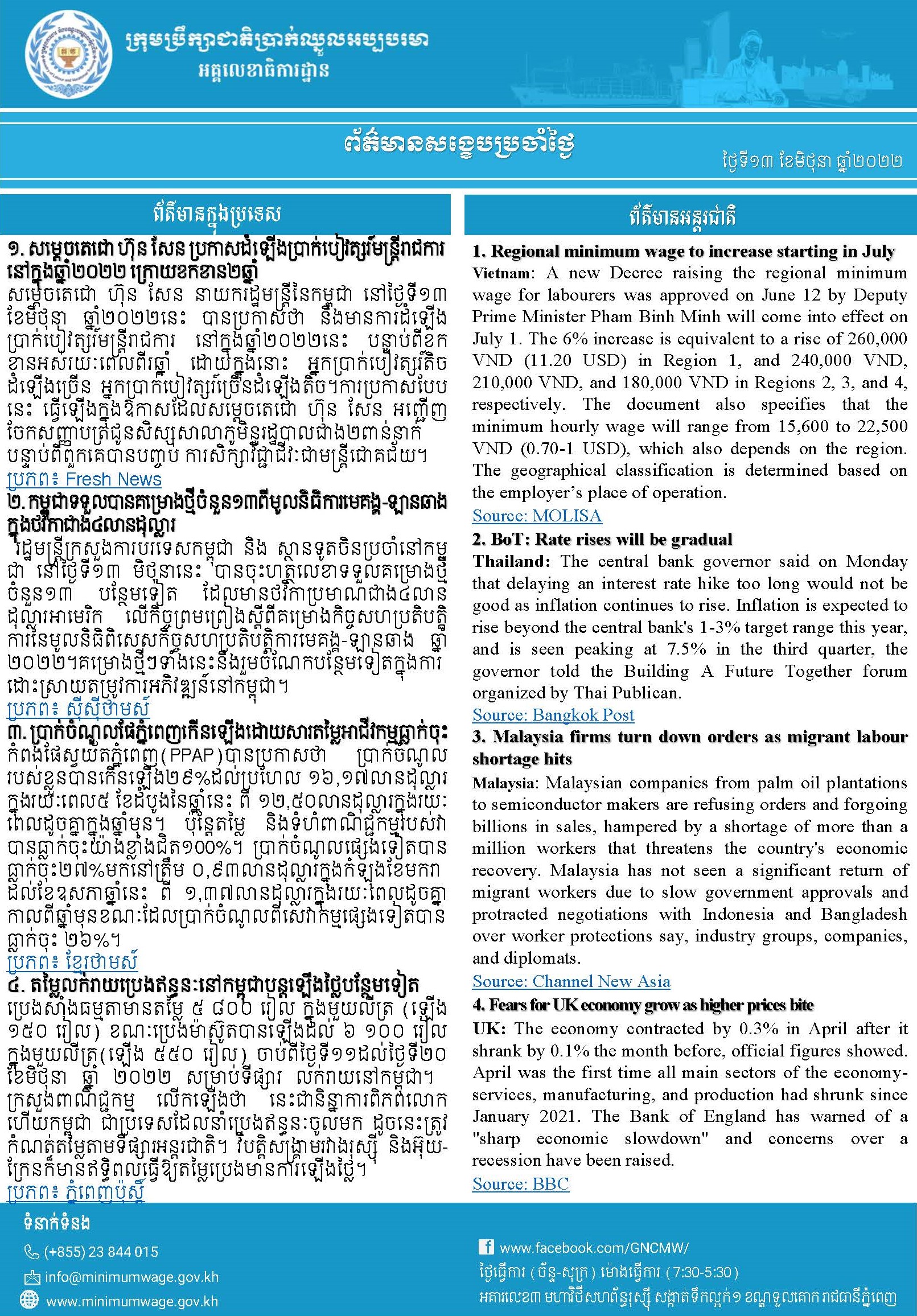 1. Regional minimum wage to increase starting in July