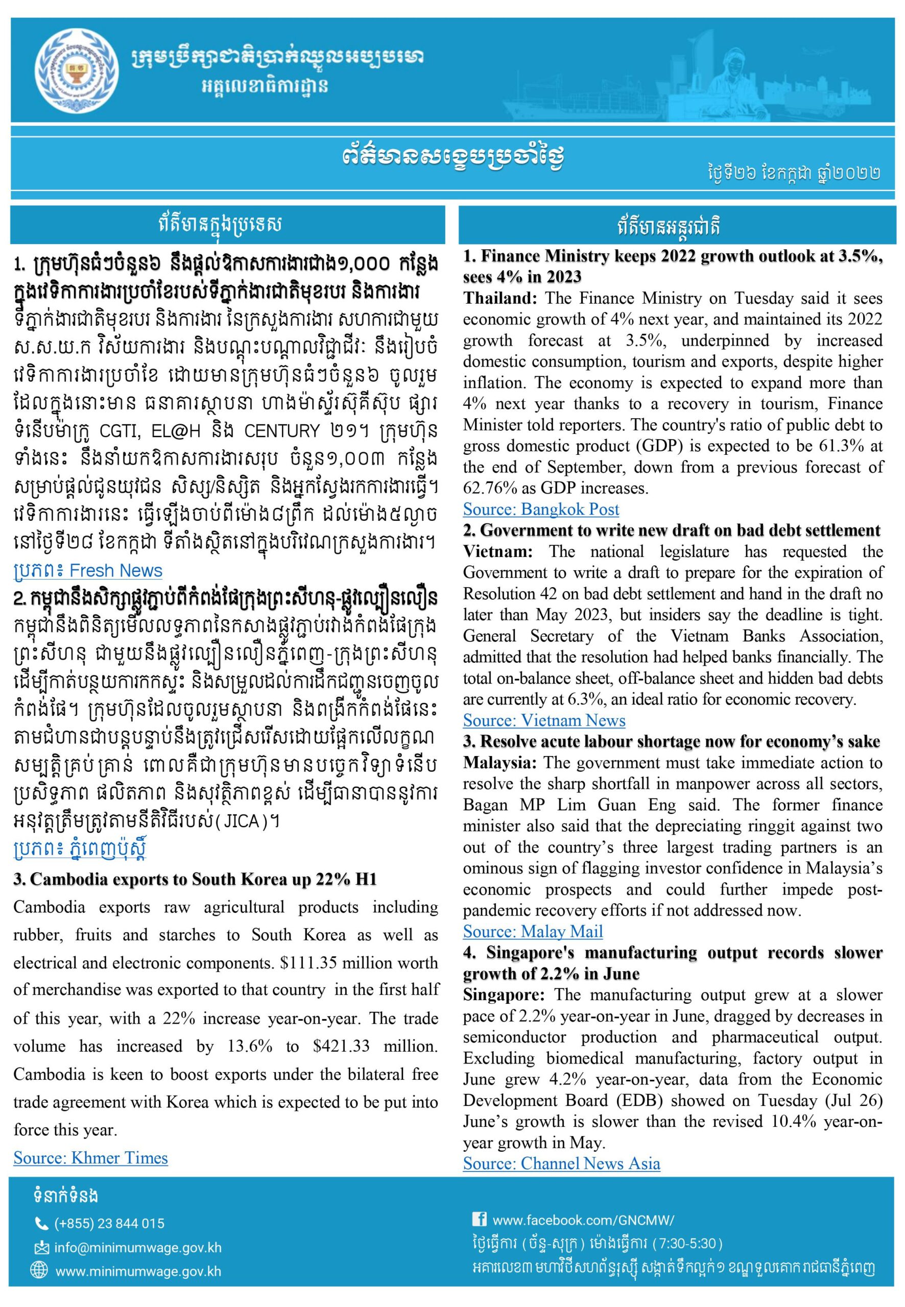 ១. ក្រុមហ៊ុនធំៗចំនួន៦ នឹងផ្តល់ឱកាសការងារជាង១,០០០ កន្លែងក្នុងវេទិកាការងារប្រចាំខែរបស់ទីភ្នាក់ងារជាតិមុខរបរ និងការងារ