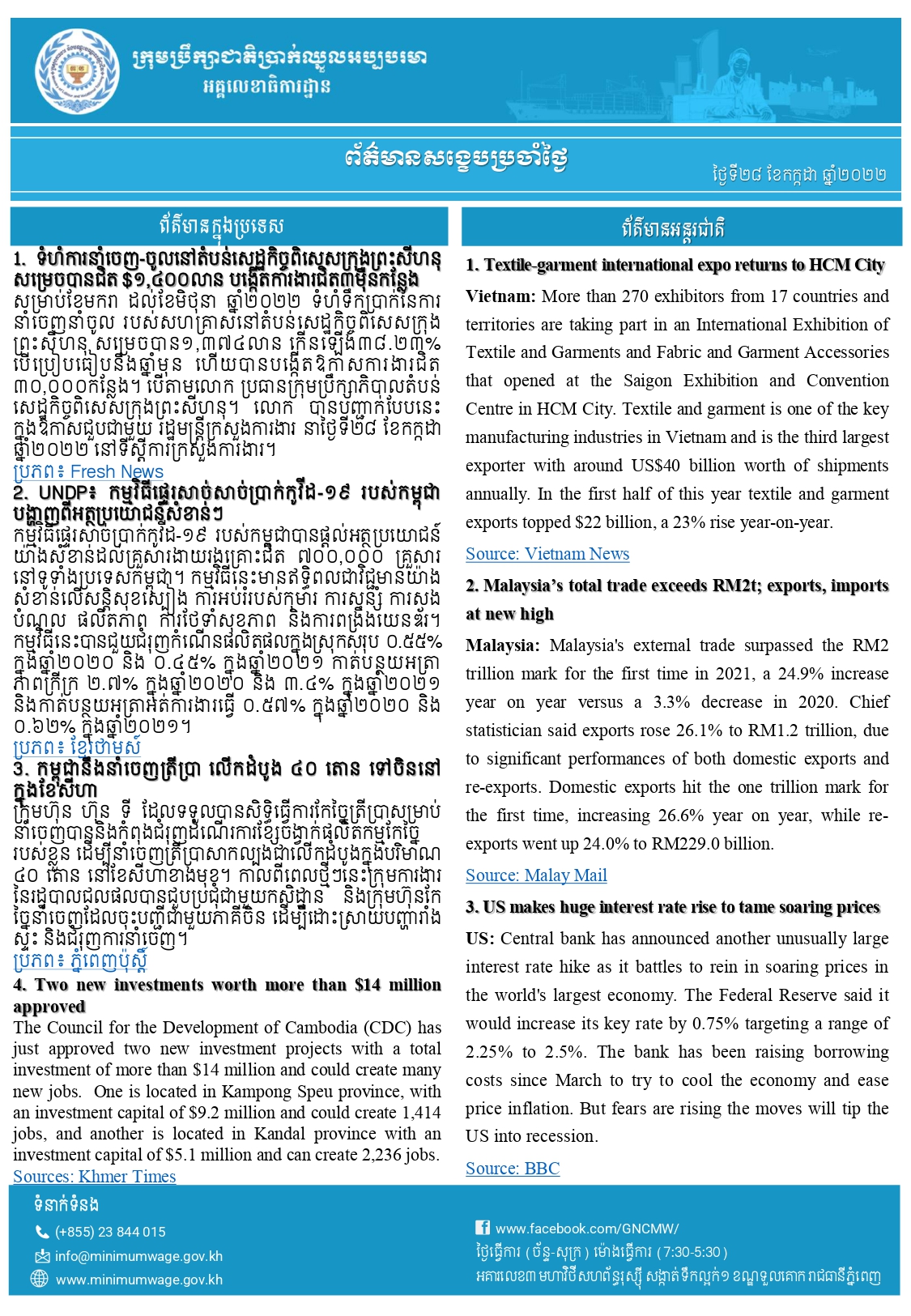 ព័ត៌មានសង្ខេបជាតិ និងអន្តរជាតិប្រចាំថ្ងៃទី២៨ ខែកក្កដា ឆ្នាំ២០២២