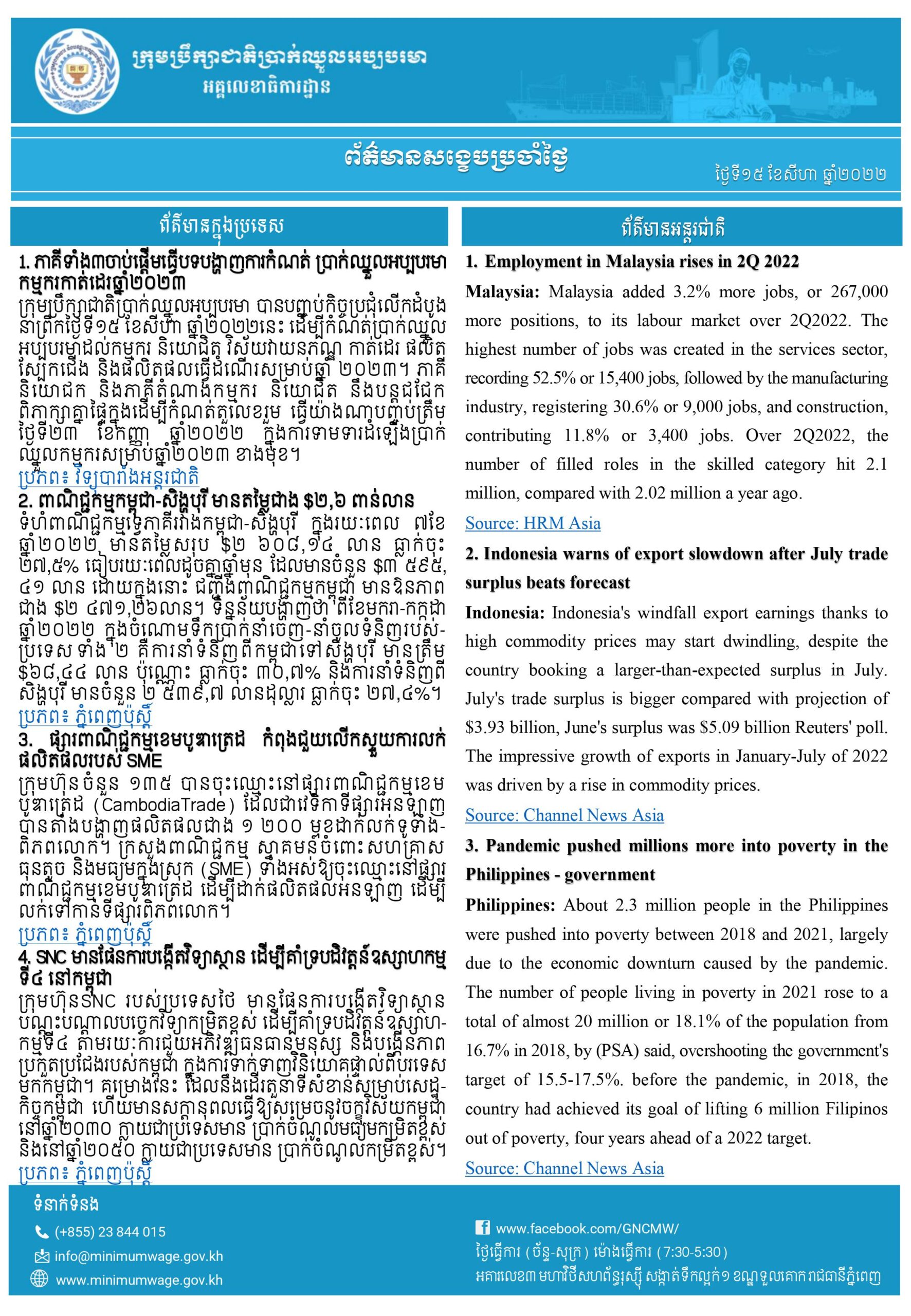 ២. ពាណិជ្ជកម្មកម្ពុជា-សិង្ហបុរី មានតម្លៃជាង $២,៦ ពាន់លាន