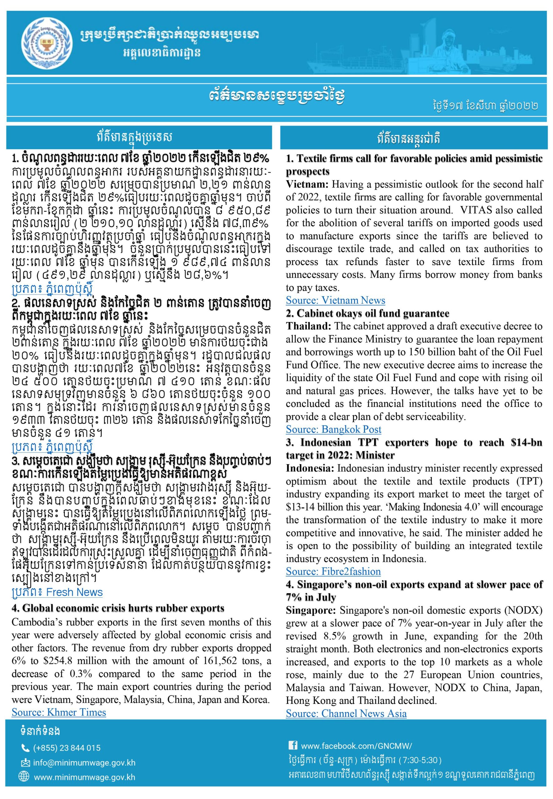 ១. ចំណូលពន្ធដាររយៈពេល ៧ខែ ឆ្នាំ២០២២ កើនឡើងជិត ២៩%