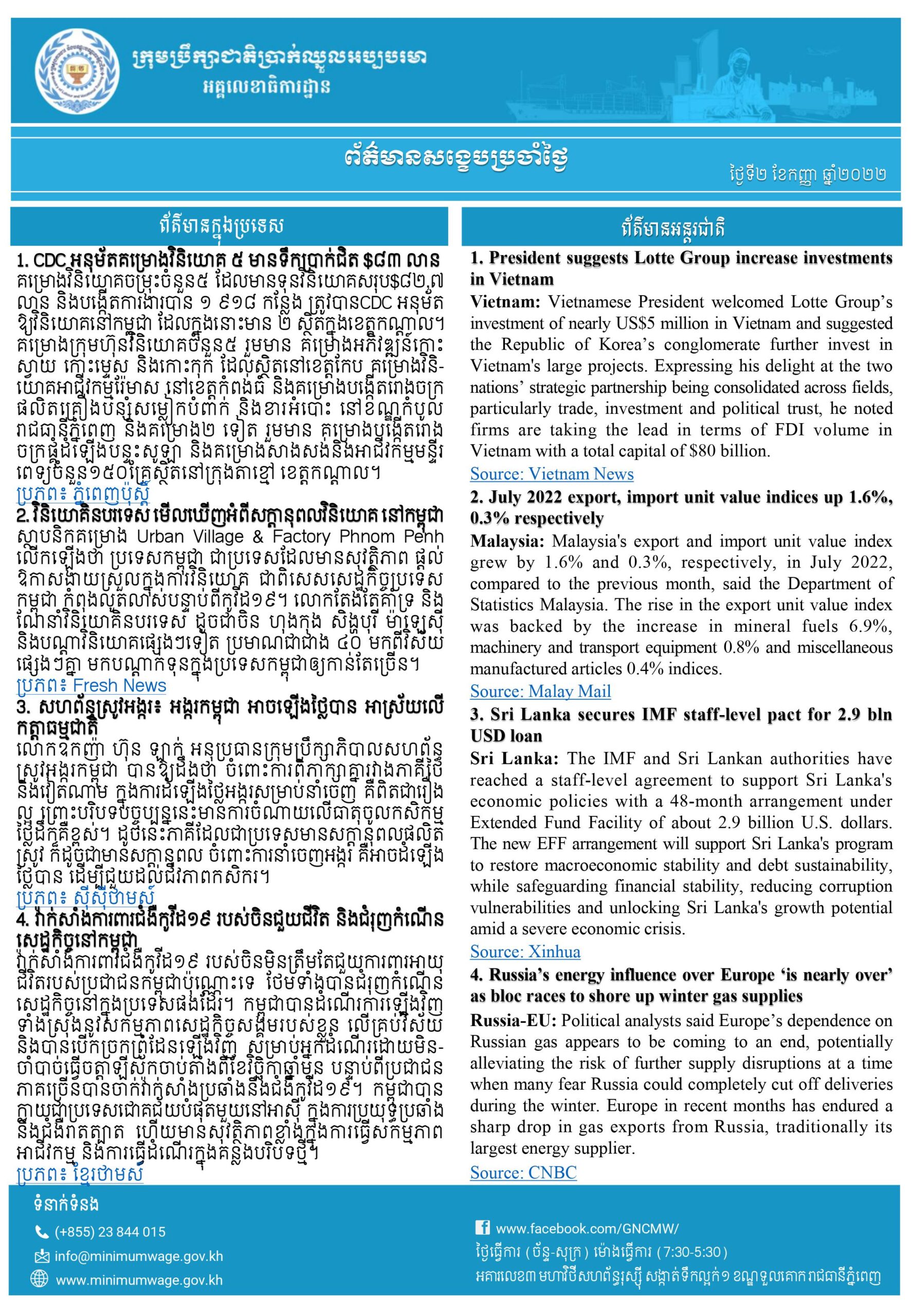 ១. CDC អនុម័តគម្រោងវិនិយោគ ៥ មានទឹកប្រាក់ជិត $៨៣ លាន