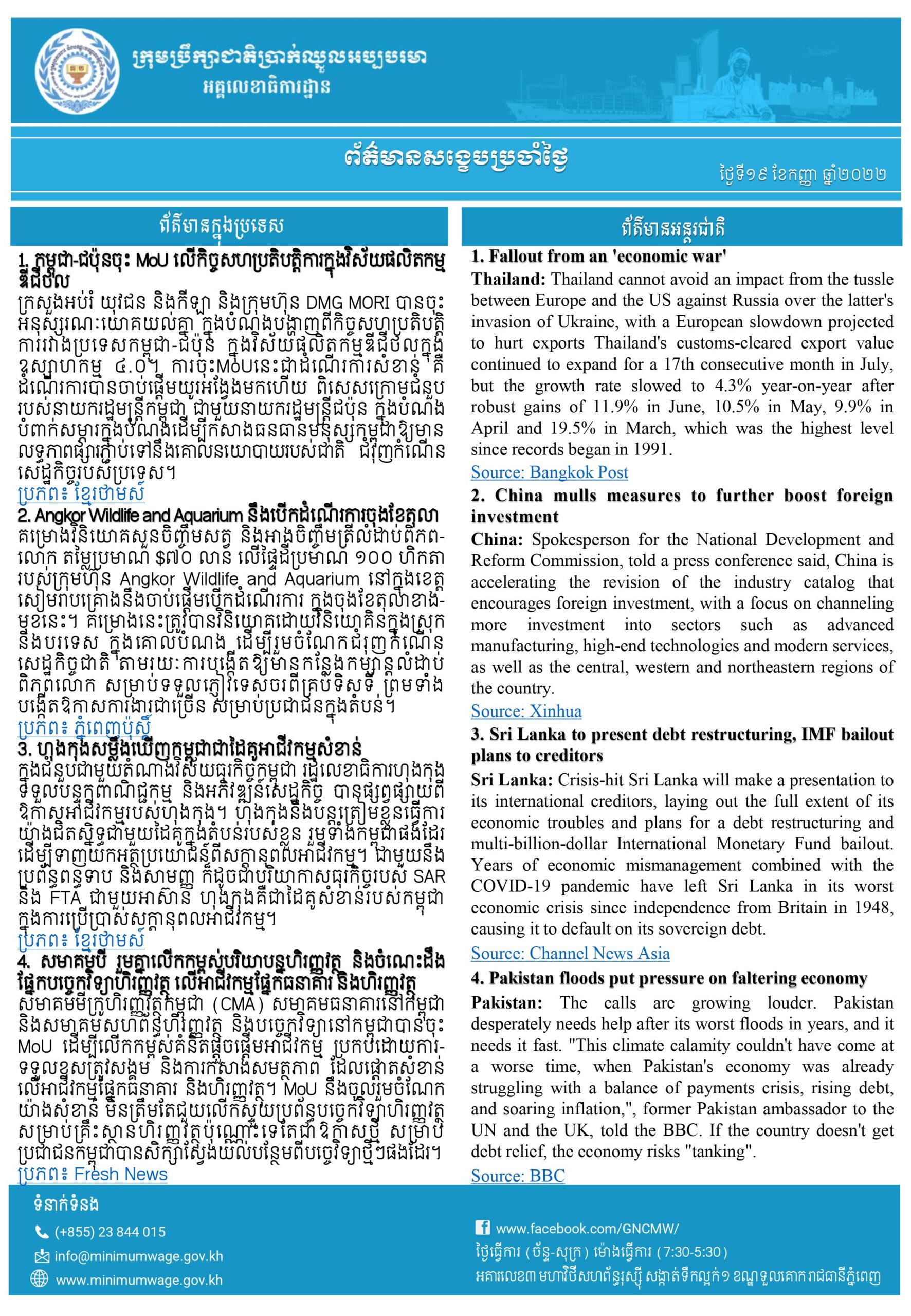 ព័ត៌មានសង្ខេបជាតិ និងអន្តរជាតិប្រចាំថ្ងៃទី៣០ ខែមករា ឆ្នាំ២០២៣ ពី អគ្គលេខាធិការដ្ឋានក្រុមប្រឹក្សាជាតិប្រាក់ឈ្នួលអប្បបរមា