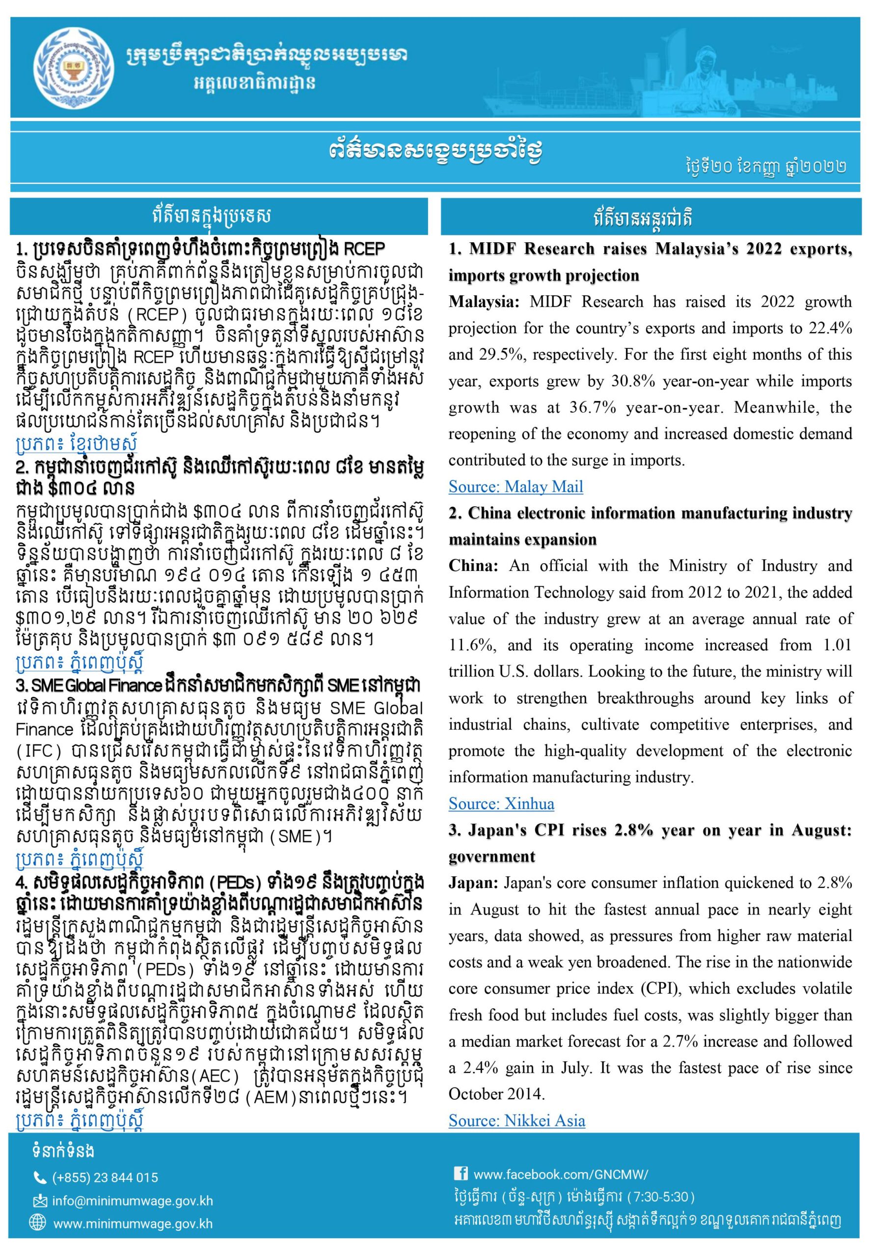ព័ត៌មានសង្ខេបជាតិ និងអន្តរជាតិប្រចាំថ្ងៃទី២០ ខែកញ្ញា ឆ្នាំ២០២២