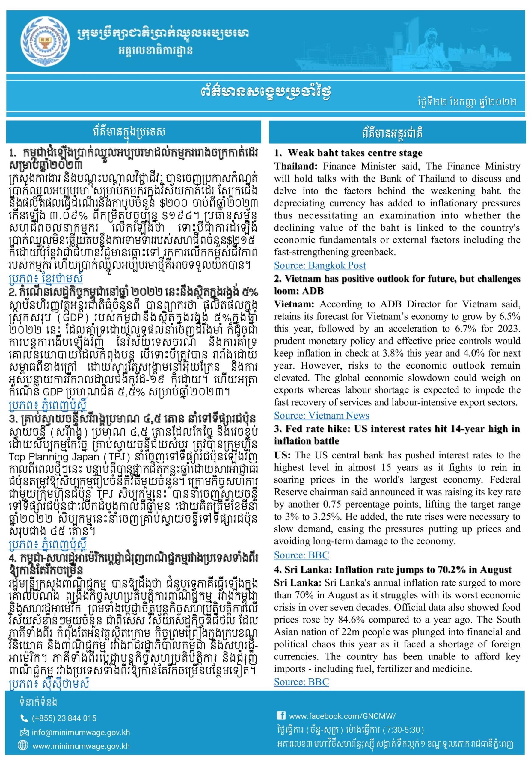 ១. កម្ពុជាដំឡើងប្រាក់ឈ្នួលអប្បបរមាដល់កម្មកររោងចក្រកាត់ដេរសម្រាប់ឆ្នាំ២០២៣