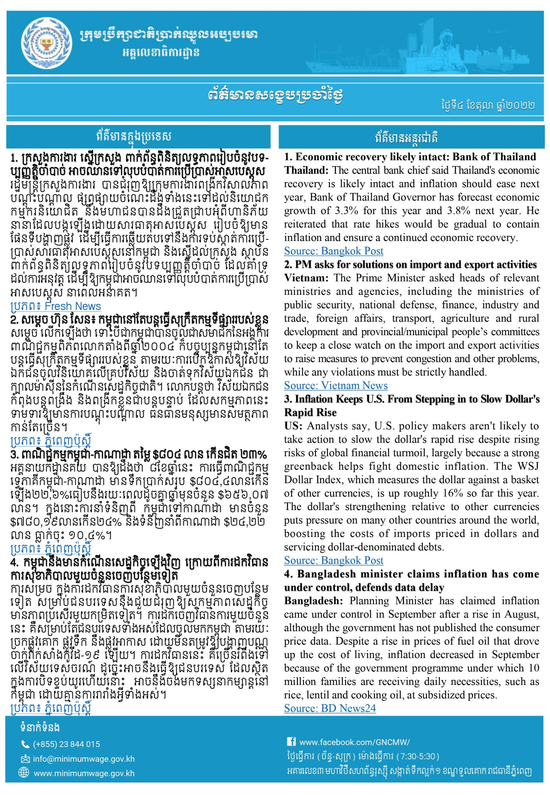 ព័ត៌មានសង្ខេបជាតិ និងអន្តរជាតិប្រចាំថ្ងៃទី៤ ខែតុលា ឆ្នាំ២០២២