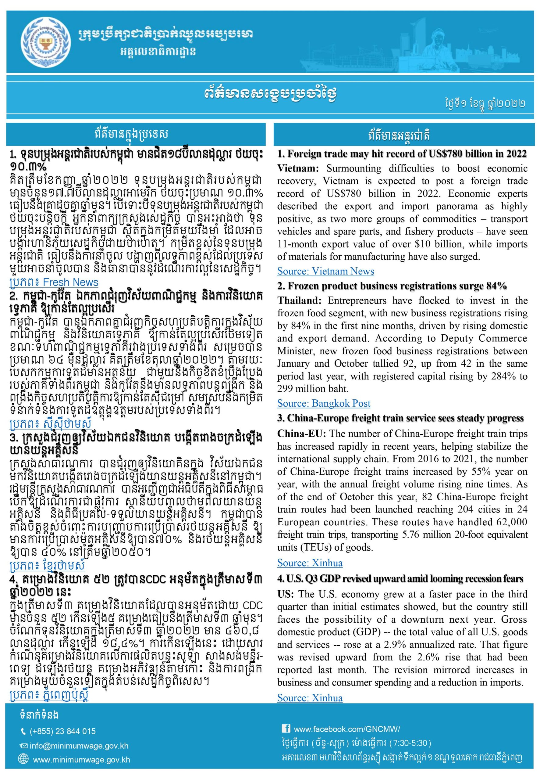 ៤. គម្រោងវិនិយោគ ៥២ ត្រូវបានCDC អនុម័តក្នុងត្រីមាសទី៣ ឆ្នាំ២០២២ នេះ