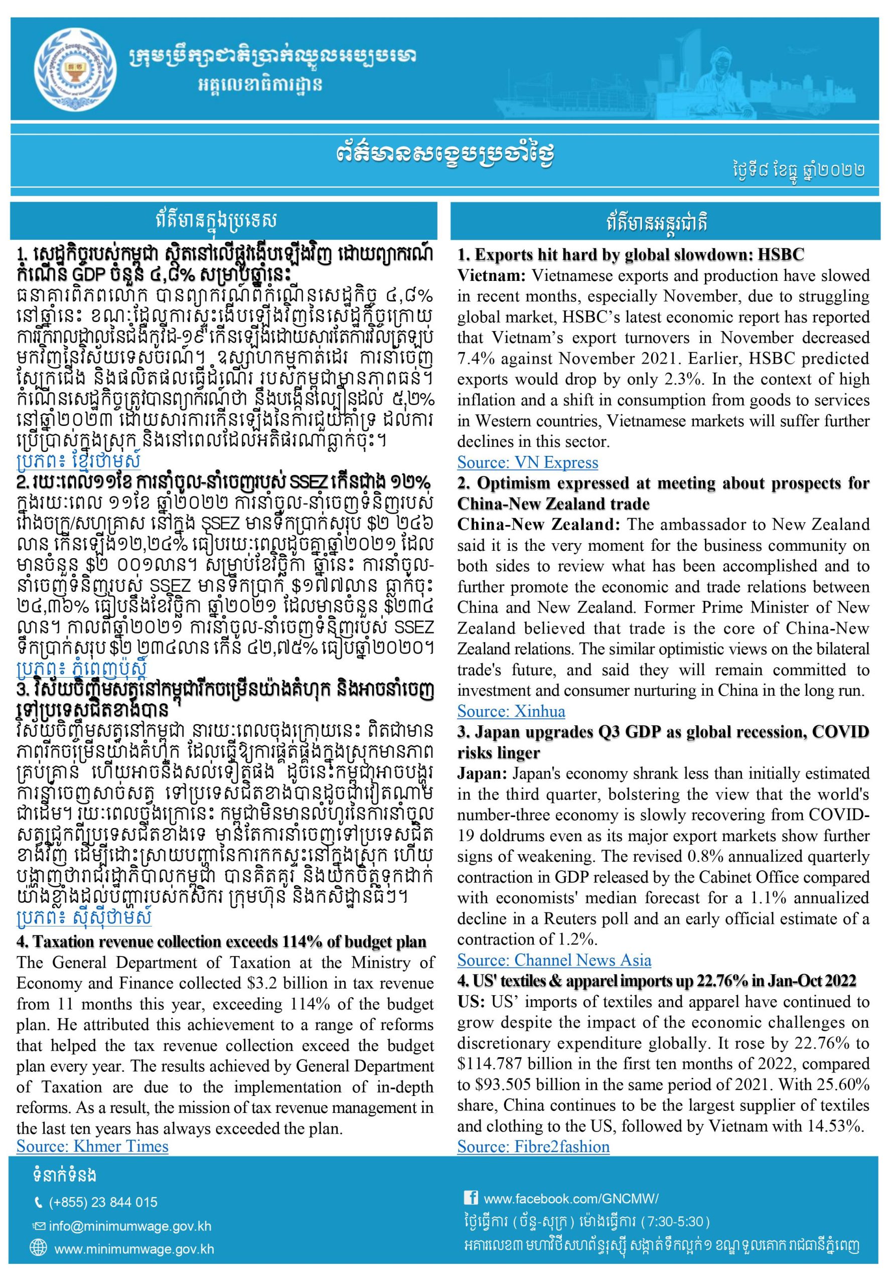 ១. សេដ្ឋកិច្ចរបស់កម្ពុជា ស្ថិតនៅលើផ្លូវងើបឡើងវិញ ដោយព្យាករណ៍កំណើន GDP ចំនួន ៤,៨% សម្រាប់ឆ្នាំនេះ