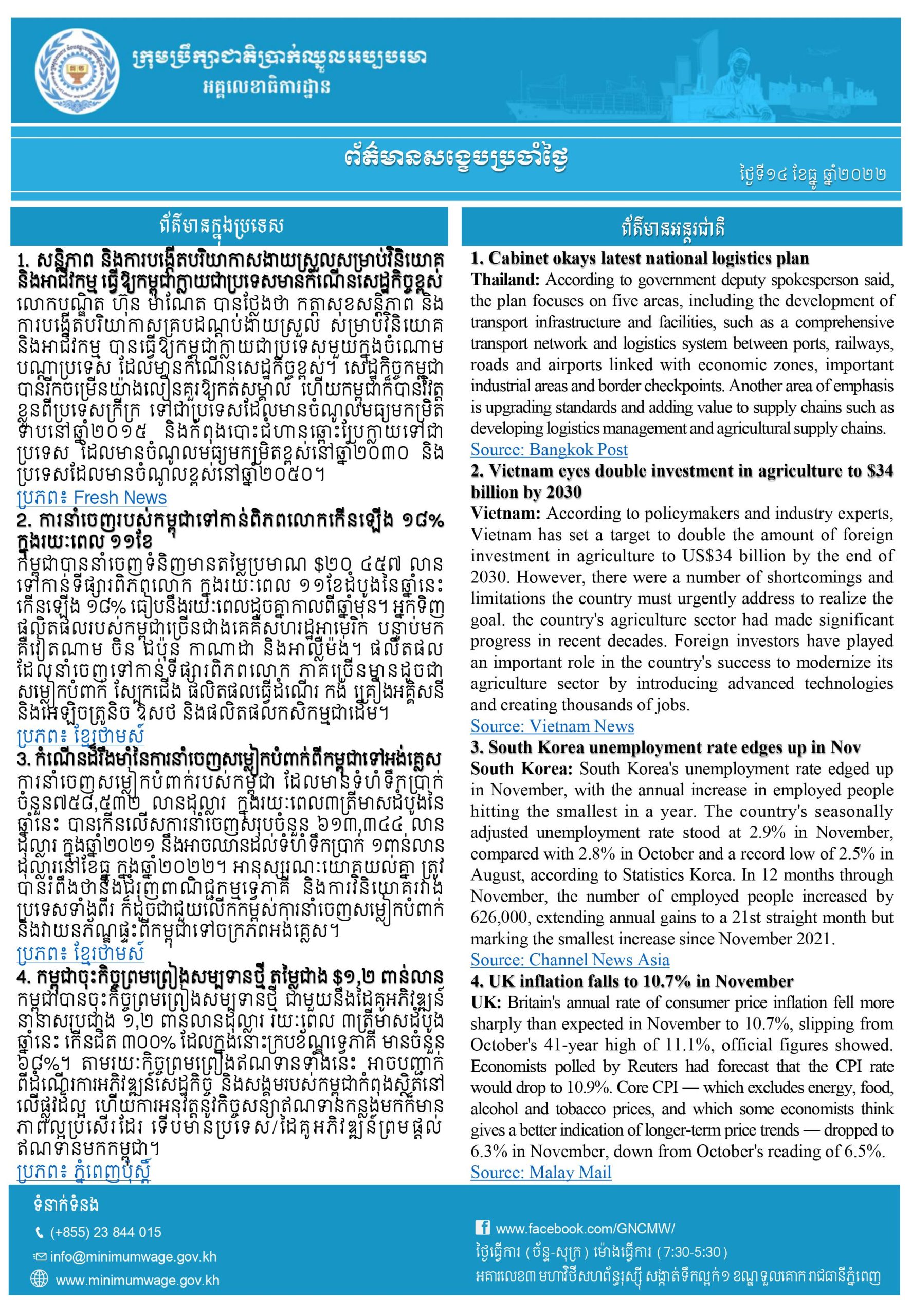 ២. ការនាំចេញរបស់កម្ពុជាទៅកាន់ពិភពលោកកើនឡើង ១៨% ក្នុងរយៈពេល ១១ខែ