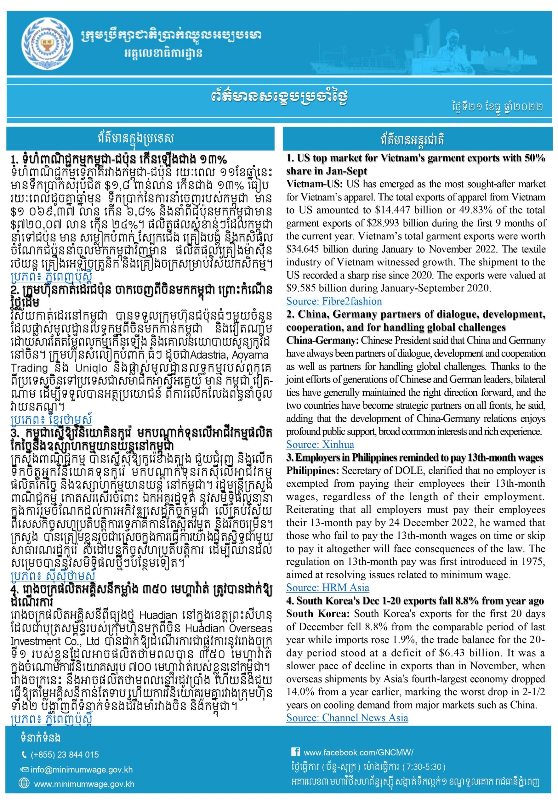 ព័ត៌មានសង្ខេបជាតិ និងអន្តរជាតិប្រចាំថ្ងៃទី២៩ ខែមីនា ឆ្នាំ២០២២ ពី អគ្គលេខាធិការដ្ឋានក្រុមប្រឹក្សាជាតិប្រាក់ឈ្នួលអប្បបរមា