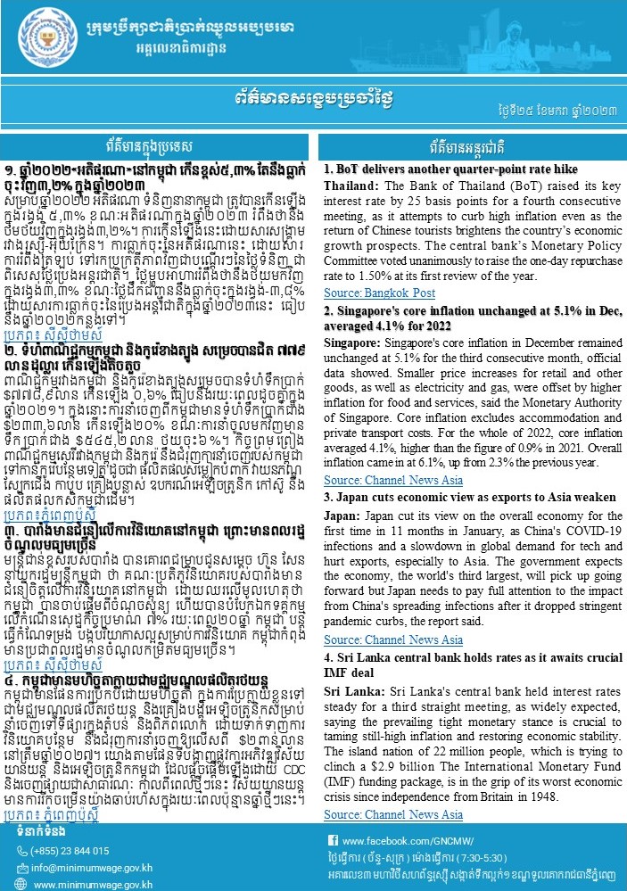 ១. ឆ្នាំ២០២២«អតិផរណា»នៅកម្ពុជា កើនខ្ពស់៥,៣% តែនឹងធ្លាក់ចុះវិញ៣,២% ក្នុងឆ្នាំ២០២៣
