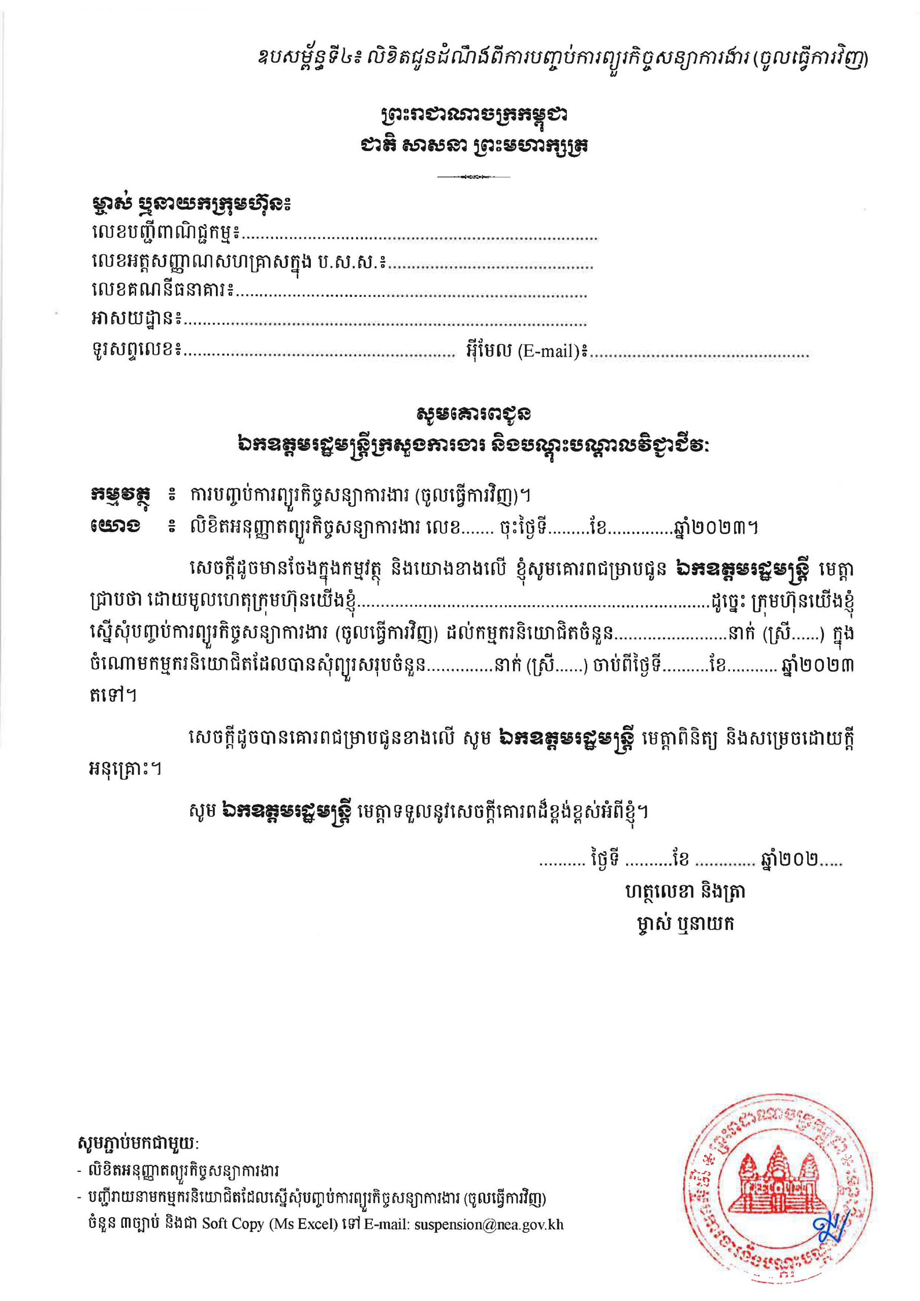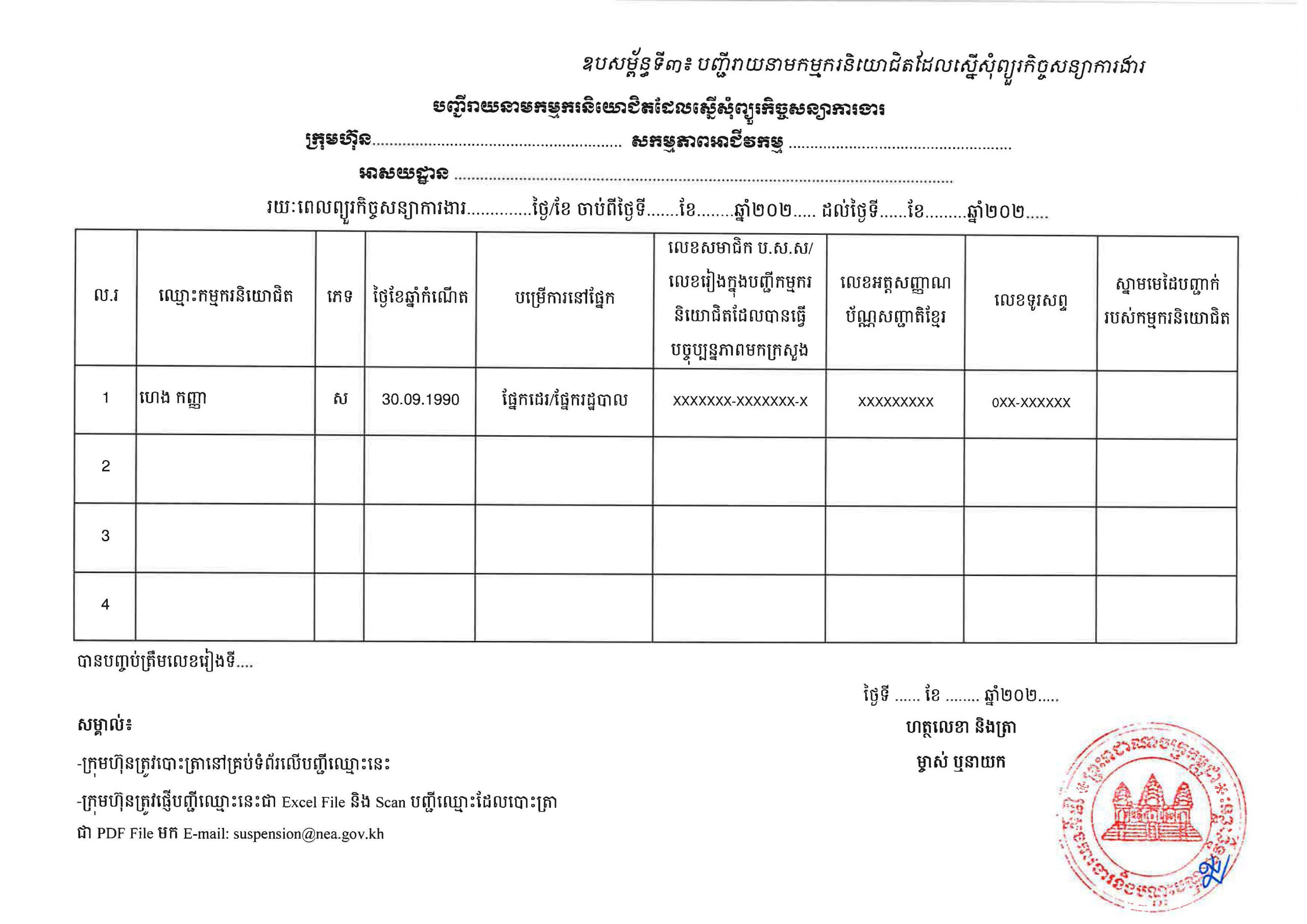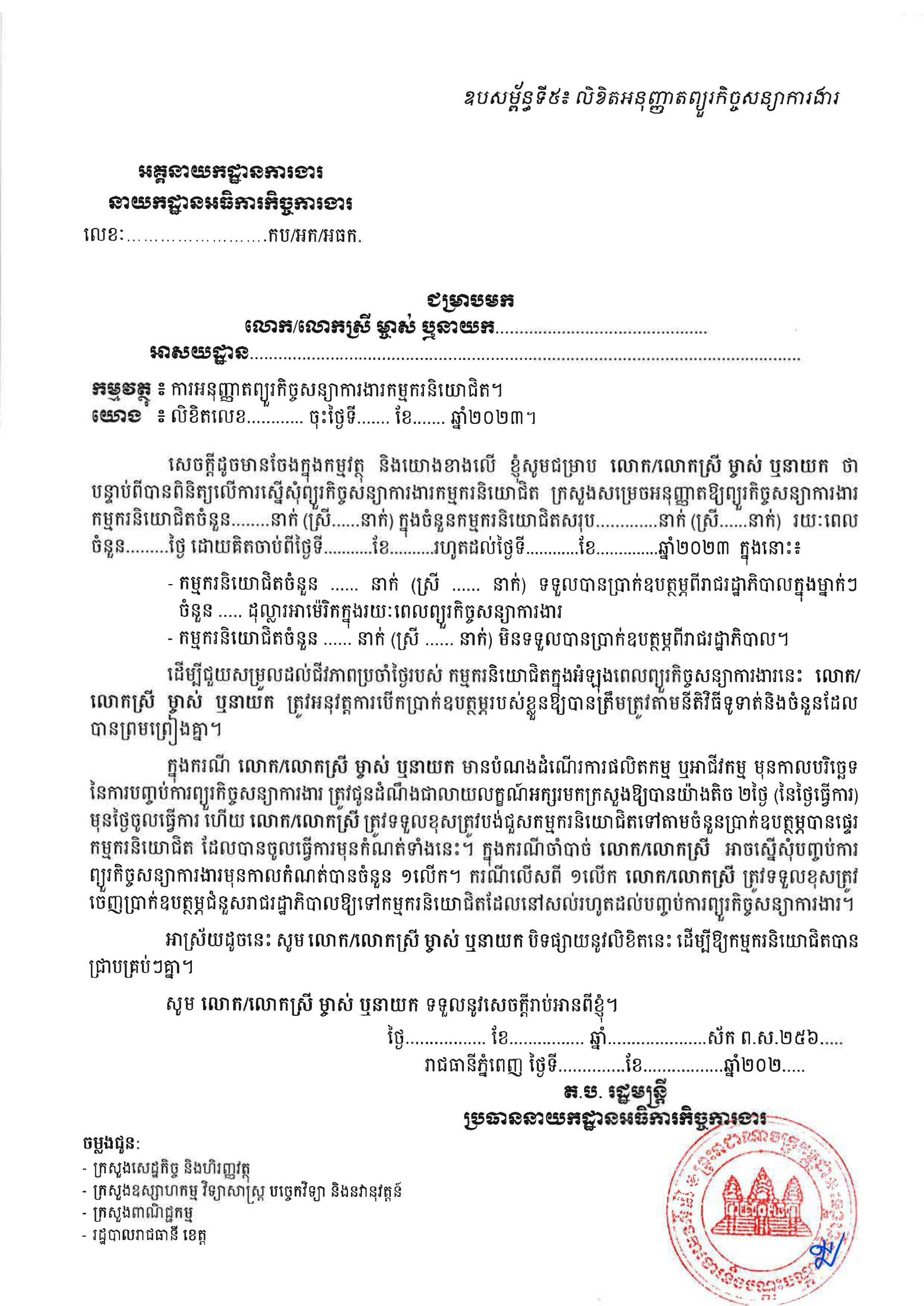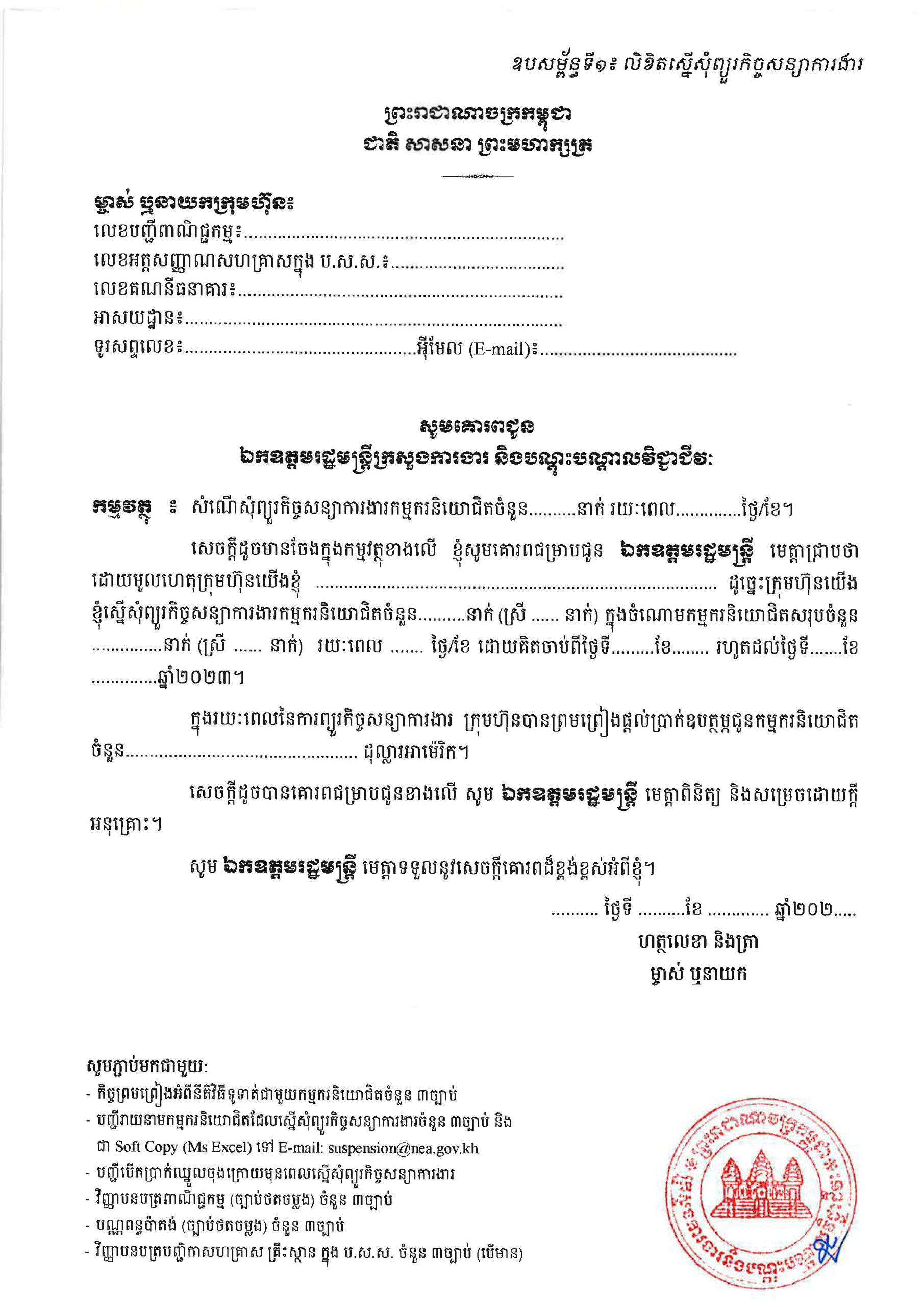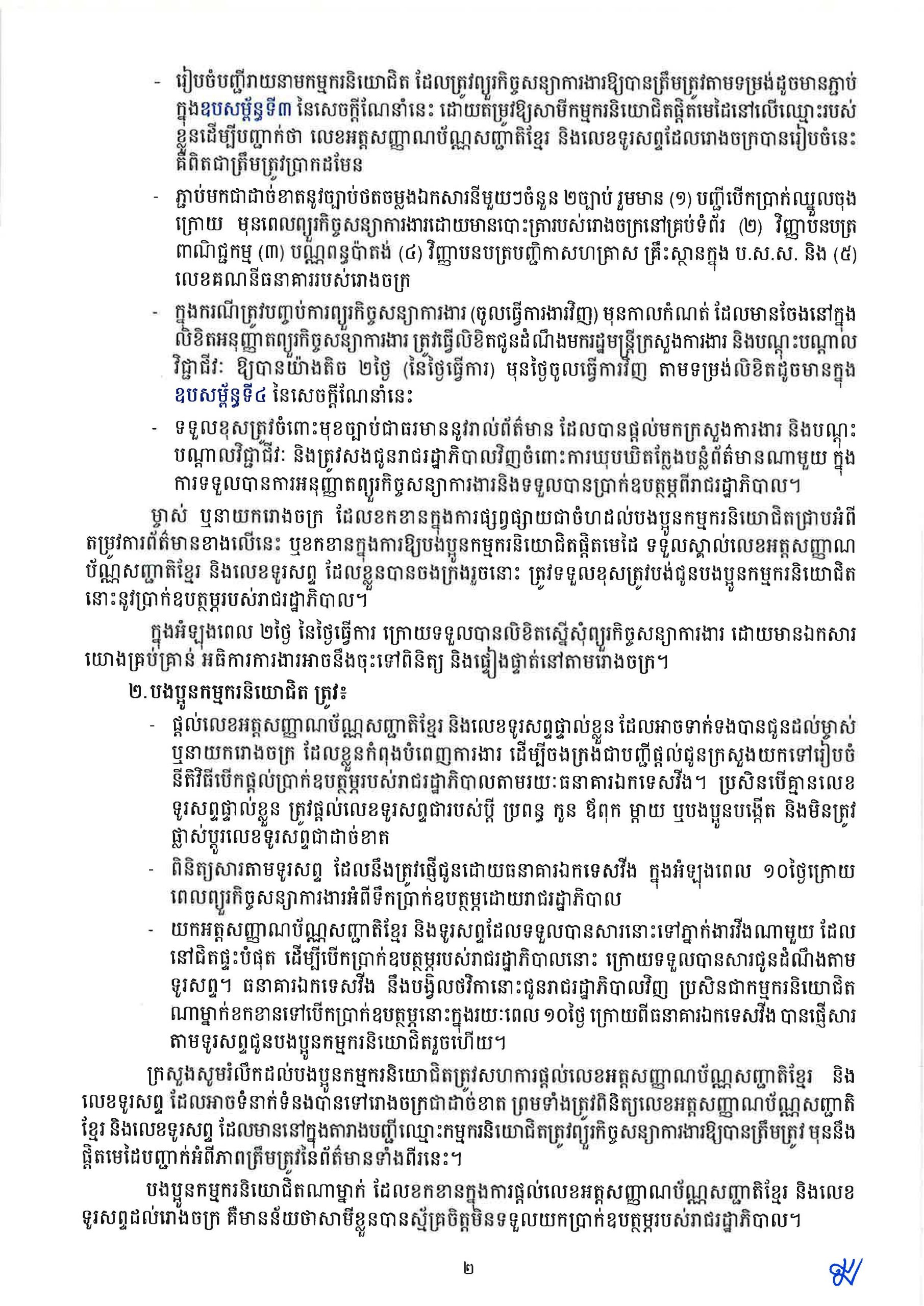 Newsសេចក្ដីណែនាំលេខ 0២០/២៣ ស្តីពីការព្យួរកិច្ចសន្យាការងារកម្មករនិយោជិតធ្វើការនៅរោងចក្រក្នុងវិស័យវាយនភណ្ឌ ថ្ងៃព្រហស្បតិ៍, 16 ខែមីនា, 2023ថ្ងៃព្រហស្បតិ៍, 16 ខែមីនា, 20230770