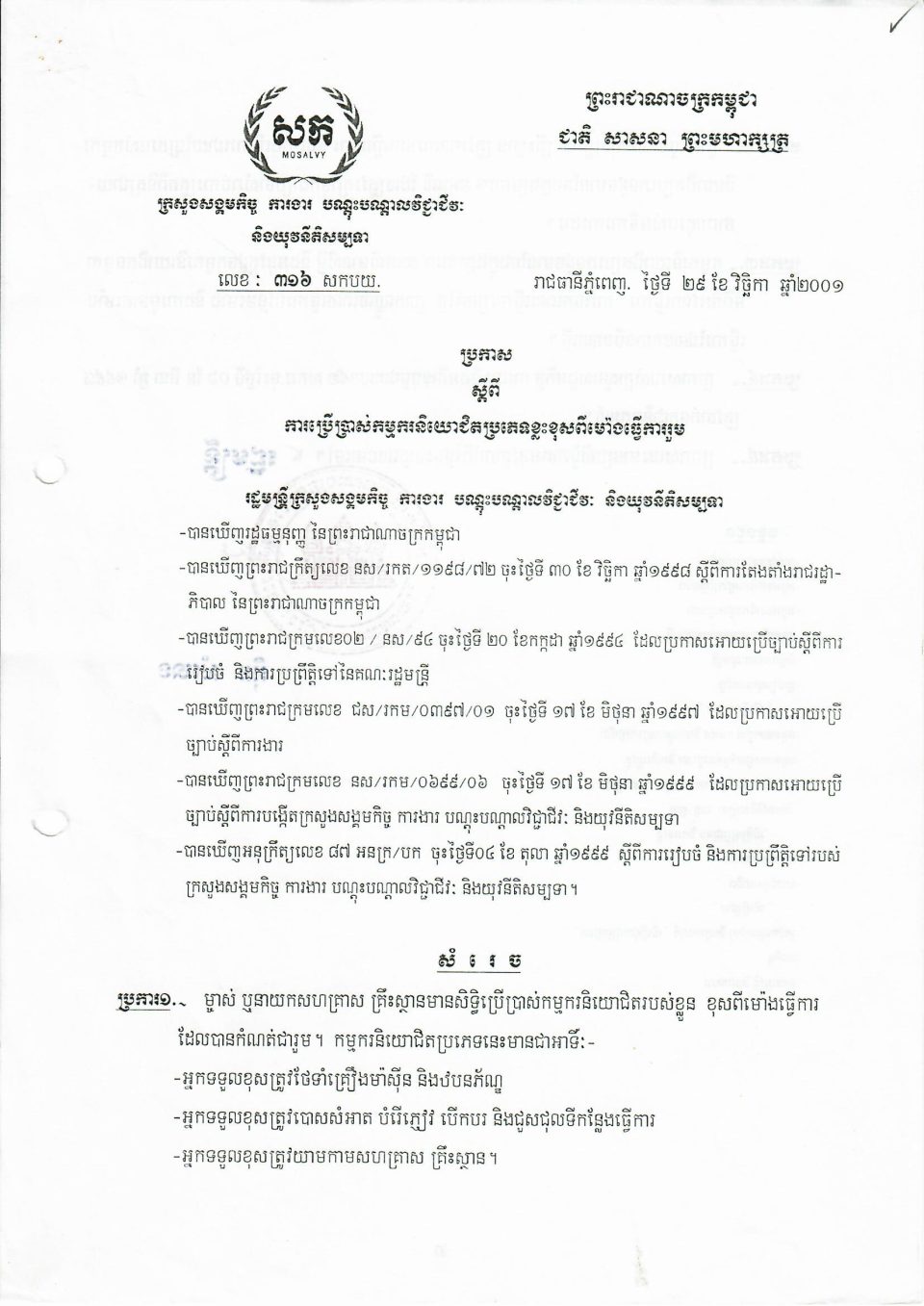 ប្រកាសស្ដីពីការកំណត់ប្រាក់ឈ្នួលអប្បបរមាសម្រាប់កម្មករនិយោជិតវិស័យវាយនភណ្ឌកាត់ដេរសំលៀកបំពាក់និងផលិតស្បែកជើងសម្រាប់ឆ្នាំ២០១៥