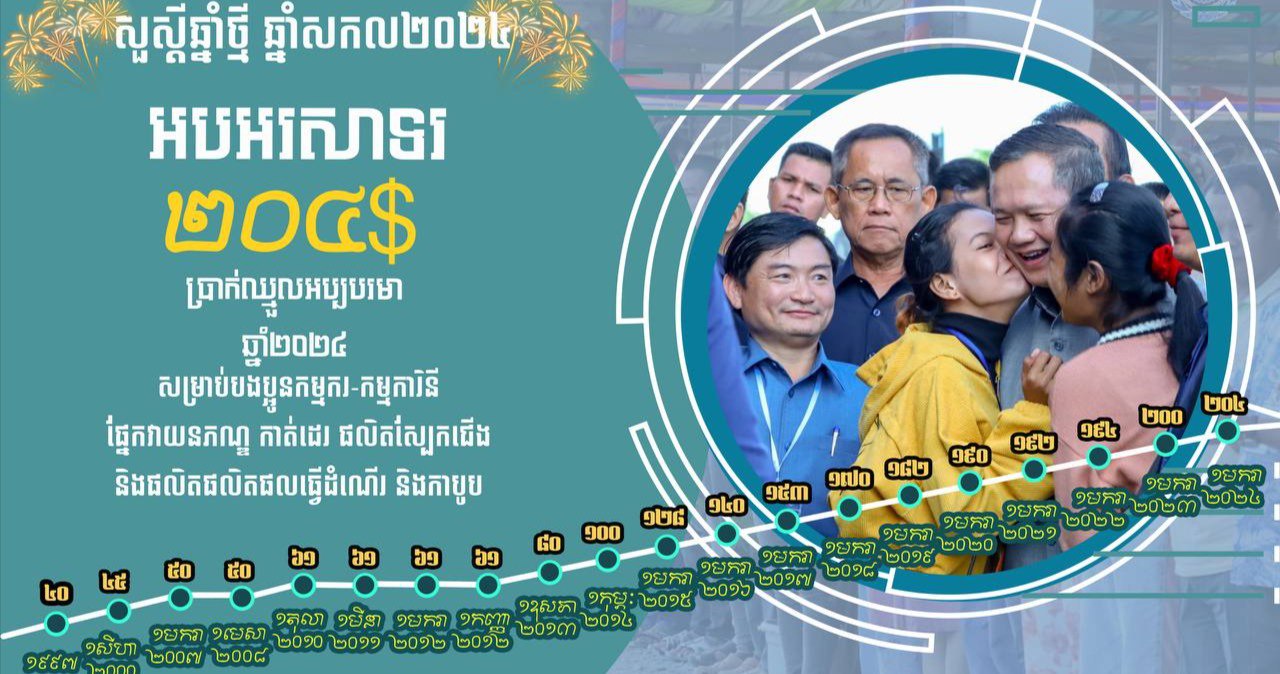 Newsអបអរសាទរ! ចាប់ពីខែមករា ឆ្នាំ២០២៤នេះតទៅ បងប្អូនកម្មករ និយោជិតក្នុងផ្នែកវាយនភណ្ឌ កាត់ដេរ ផលិតស្បែកជើង និងផលិតផលិតផលធ្វើដំណើរ និងកាបូប នឹងទទួលបានប្រាក់ឈ្នួលអប្បបរមា ២០៤ដុល្លារ ក្នុង ១ខែ Tuesday, 2 January, 2024Tuesday, 16 January, 20240563