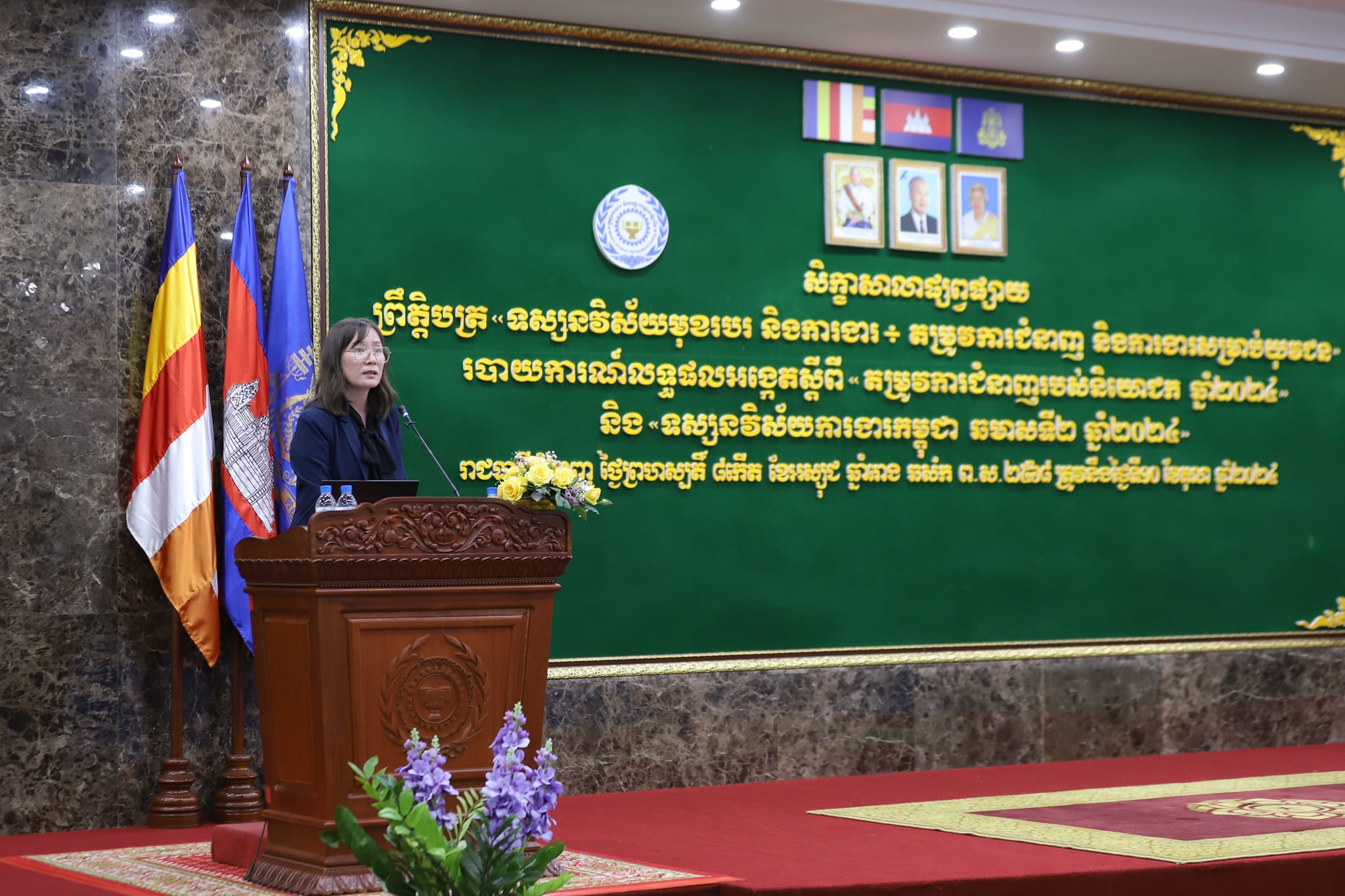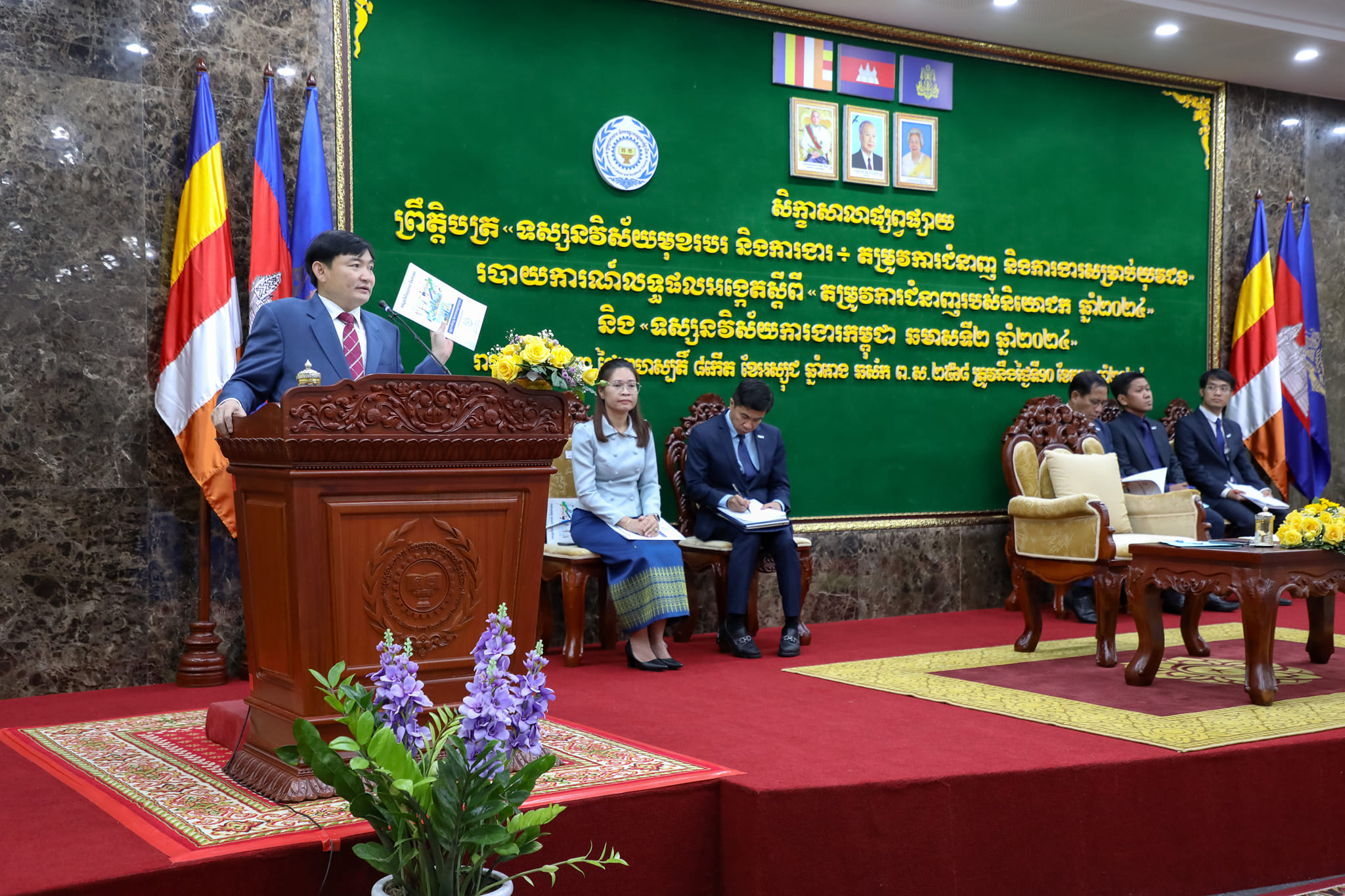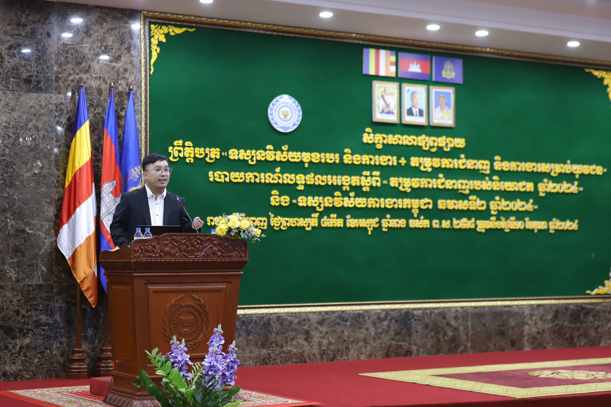 ឯកឧត្តម ប្រុញ សុភាណា អគ្គលេខាធិការ នៃអគ្គលេខាធិការដ្ឋានក្រុមប្រឹក្សាជាតិប្រាក់ឈ្នួលអប្បបរមា បានចូលរួមអម ឯកឧត្តម ហេង សួរ រដ្ឋមន្ត្រី ក្រសួងការងារ និងបណ្តុះបណ្តាលវិជ្ជាជីវៈក្នុងឱកាសសិក្ខាសាលាផ្សព្វផ្សាយ ព្រឹត្តិបត្រ «ទស្សនវិស័យមុខរបរ និងការងារ៖ តម្រូវការជំនាញ និងការងារសម្រាប់យុវជន» របាយការណ៍លទ្ធផលអង្កេតស្តីពី «តម្រូវការជំនាញរបស់និយោជក ឆ្នាំ២០២៤» និង «ទស្សនៈវិស័យការងារកម្ពុជា ឆមាសទី២ ឆ្នាំ២០២៤» នាថ្ងៃទី១០ ខែតុលា ឆ្នាំ២០២៤។
