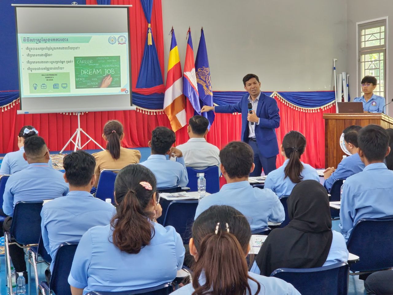 សិក្ខាសាលាចែករំលែក ចំណេះដឹង បទពិសោធន៍ស្ដីពី «ការណែនាំអាជីពការងារ និងវិជ្ជាជីវៈសម្រាប់និស្សិត និងការត្រៀមលក្ខណៈសម្បត្តិក្នុងការស្វែងរកការងារ» និង «ទស្សនៈវិស័យការងារ និង យន្តការកំណត់ប្រាក់ឈ្នួលអប្បបរមានៅកម្ពុជា»