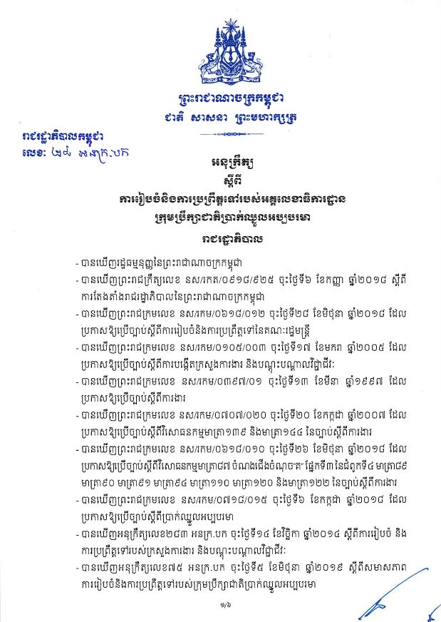 អនុក្រឹត្យអនុក្រឹត្យ ស្តីពីការរៀបចំ និងការប្រព្រឹត្តទៅរបស់អគ្គលេខាធិការដ្ឋានក្រុមប្រឹក្សាជាតិប្រាក់ឈ្នួលអប្បបរមា Sunday, 21 March, 2021Sunday, 21 March, 202101739 អនុក្រឹត្យ ស្តីពីការរៀបចំ និងការប្រព្រឹត្តទៅរបស់អគ្គលេខាធិការដ្ឋានក្រុមប្រឹក្សាជាតិប្រាក់ឈ្នួលអប្បបរមា