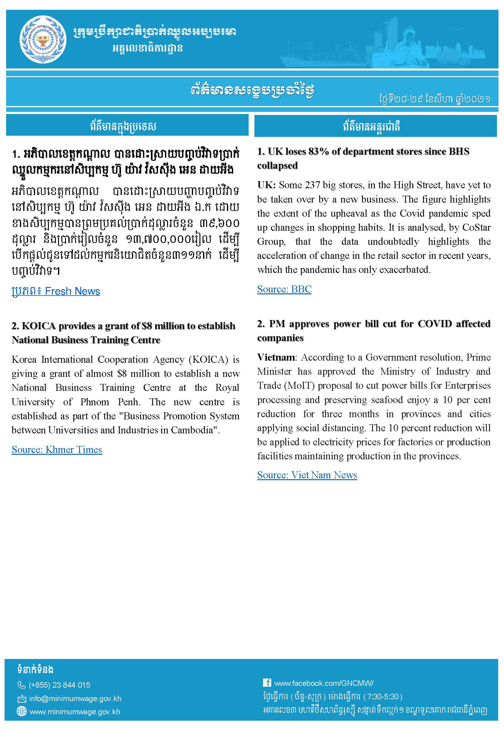 ព័ត៌មានសង្ខេបជាតិ និងអន្តរជាតិប្រចាំថ្ងៃទី២៨-២៩ ខែសីហា ឆ្នាំ២០២១