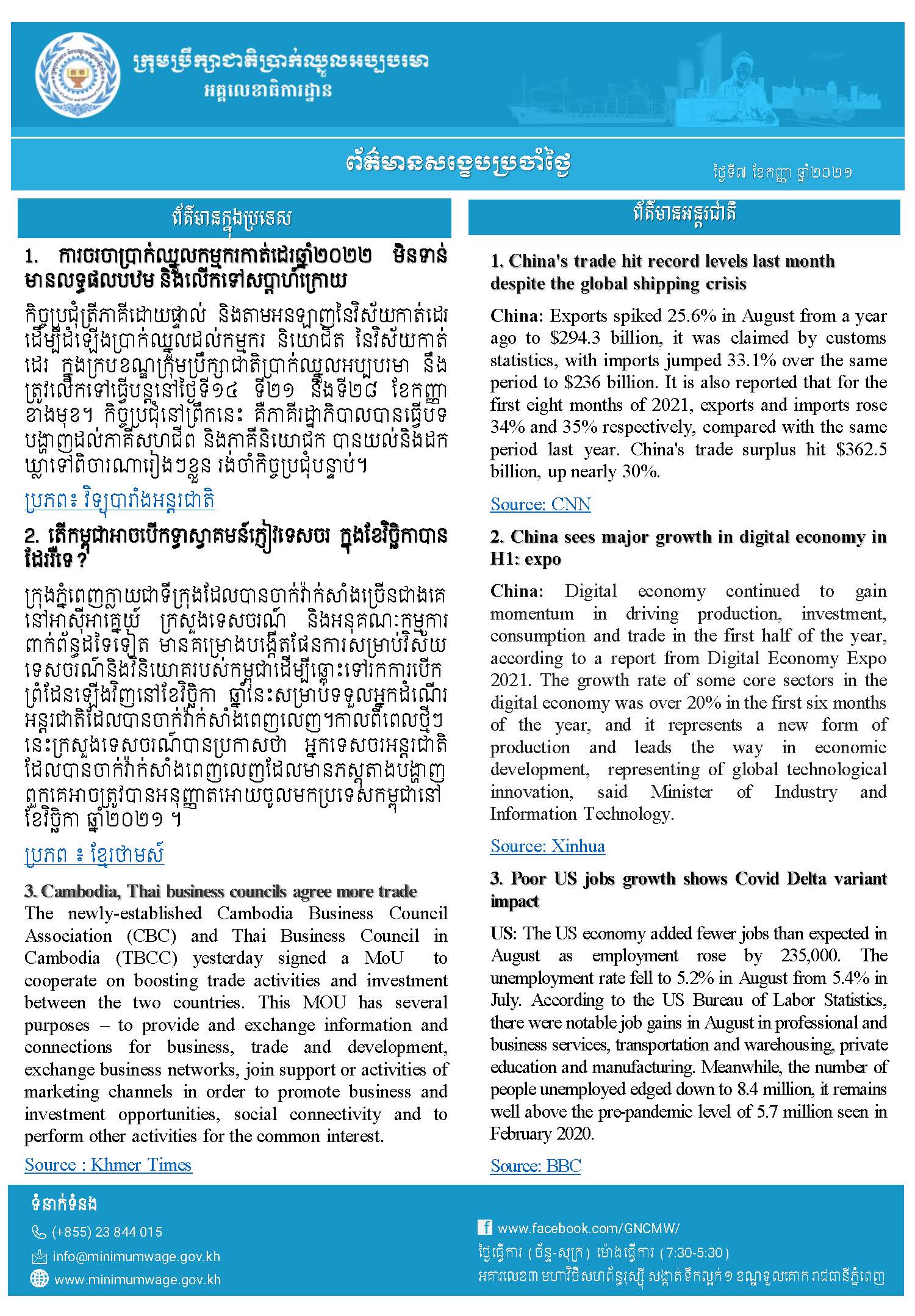 ១. ការចរចាប្រាក់ឈ្នួលកម្មករកាត់ដេរឆ្នាំ២០២២ មិនទាន់មានលទ្ធផលបឋម និងលើកទៅសប្តាហ៍ក្រោយ