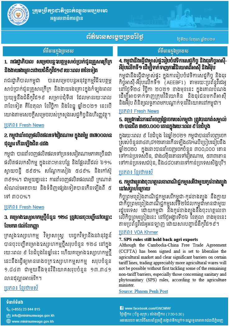 ១. រាជរដ្ឋាភិបាល សម្រេចបន្តឧបត្ថម្ភសាច់ប្រាក់ជូនគ្រួសារក្រីក្រ និងងាយរងគ្រោះដោយជំងឺកូវីដ១៩ រយៈពេល ៣ខែទៀត